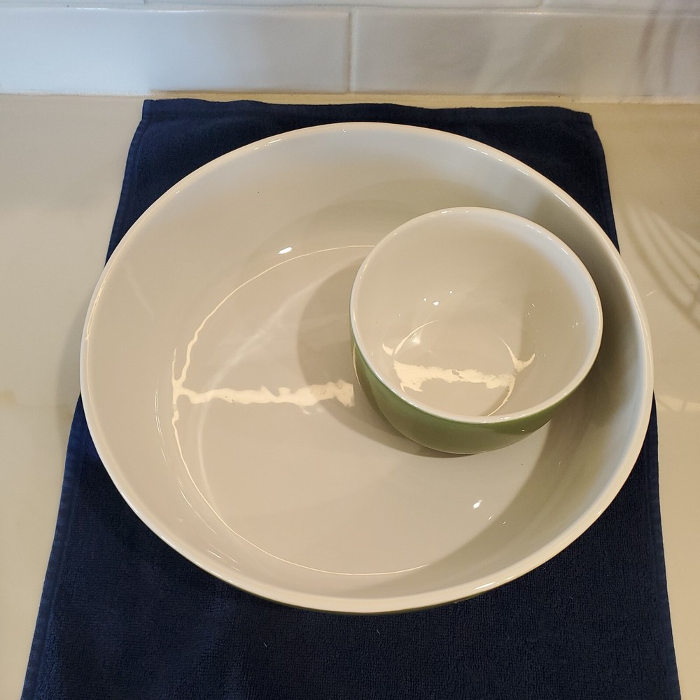 Up for sale is a nice Home hunter green ceramic Classic Chip and Dip Bowl with white interior large one piece bowl that is NICE and Heavy and in perfect condition. Measures 13" across x 4" deep and weighs over 6 pounds. Thanks for looking and check out my other listings.
