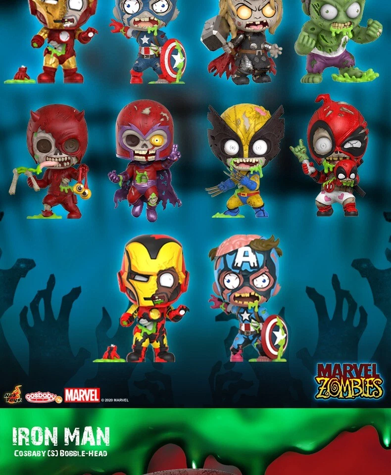 Hot Toys 11 Styles Marvel Zombie Wolverine Deadpool Iron Man Thor COSBABY Condition:Brand New, never used Material:PVC Size:10-13CM Please Note: 1. The colors may have different as the difference display, please understand. 2. Collectible toys do not exclude the production process problems caused by defects such as paint / staining / overflow glue / workmanship is not rigorous and so on, perfectionists should not shoot! 3.The box may be in transit caused by extrusion or deformation, perfectionists do not shoot!