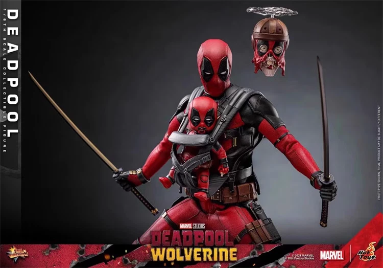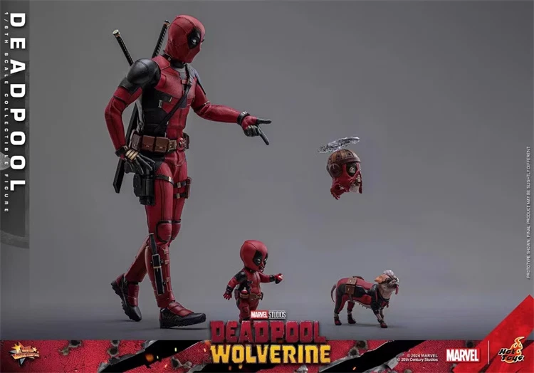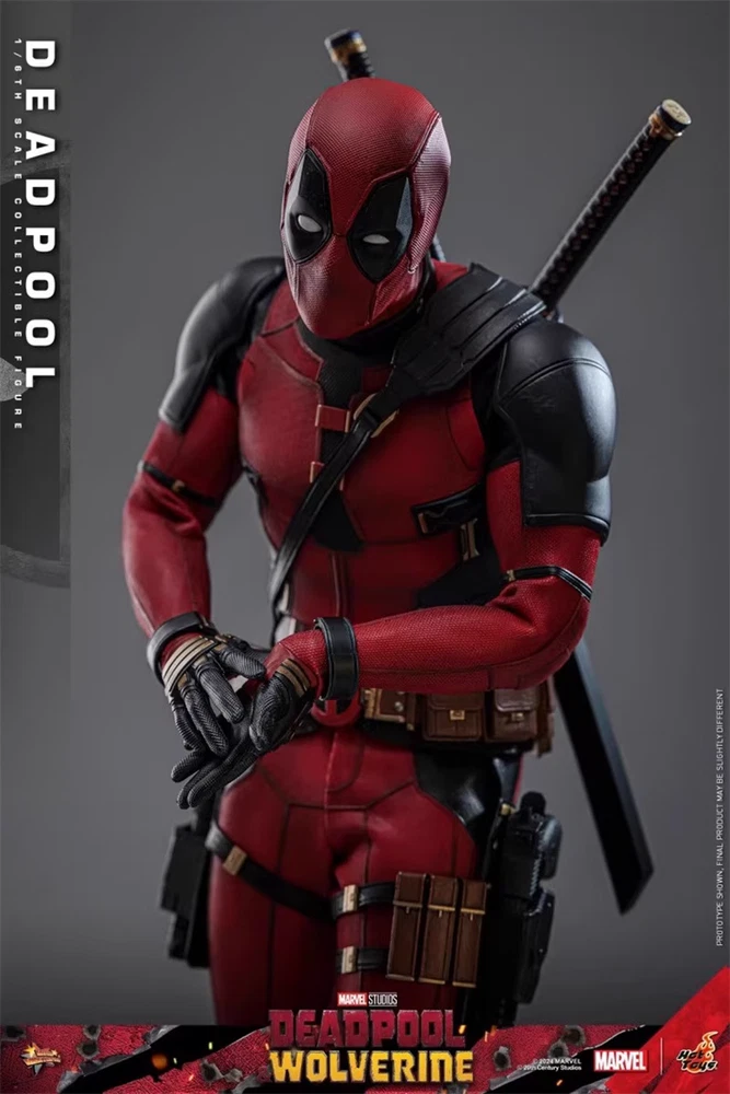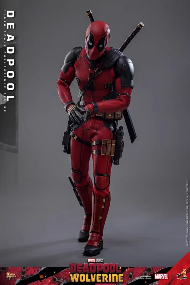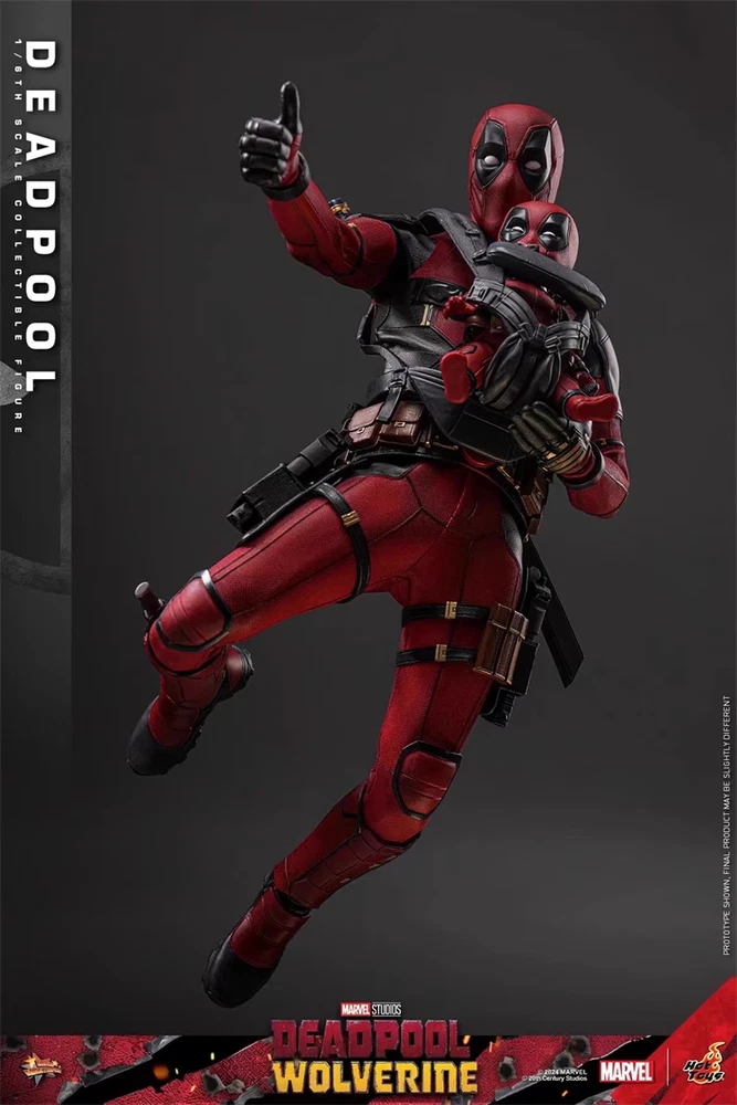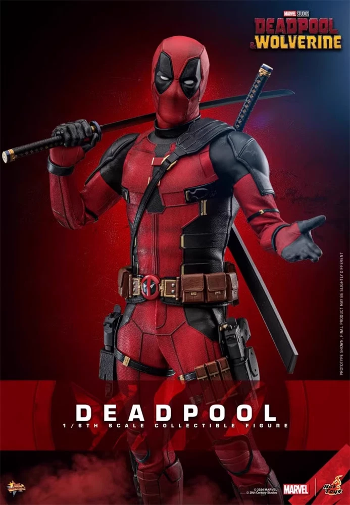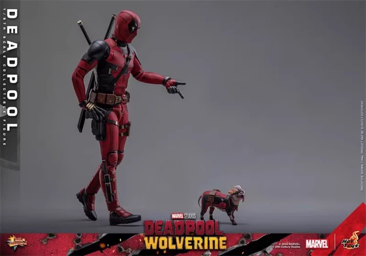 Hot Toys 1/6 MMS746B Deadpool From Deadpool Wolverine Figure Special Ver. The 1/6th scale Deadpool Collectible Figure specially features: - Authentic and detailed likeness of Deadpool in Deadpool & Wolverine movie - One (1) newly developed masked head with five (5) pairs of interchangeable eye pieces that can create numerous combinations of Deadpool’s expressions - Approximately 31 cm tall - Newly developed body with over 30 points of articulation - Twelve (12) pieces of interchangeable gloved hands including: One (1) pair for pistol holding hands One (1) pair of dagger/katana holding hands One (1) pair of open hands One (1) pair of finger pointing hands One (1) pair of heart gesture hands One (1) thumb-up right hand One (1) OK-sign left hand Costume: - One (1) newly tailored red and black-colored Deadpool suit - One (1) brown-colored utility belt with pouches and metallic red colored buckle - One (1) pair of thigh gun holsters - One (1) dagger sheath on shin - One (1) pair of metallic red and black-colored boots Weapons: - One (1) dagger - Two (2) katanas - Two (2) pistols Accessories: - One (1) Dogpool with goggles (moveable head, articulated front legs) - One (1) katana sheath - Themed figure stand with character name (available only in Regular Version) - *Additional accessories coming soon