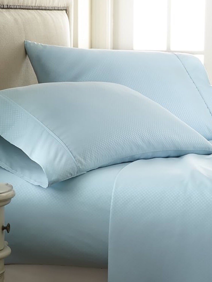 Enjoy a comfortable and luxurious sleep with this Ienjoy home 4 Piece Twin Sheet Set in Baby Blue. Made of high-quality microfiber material, this sheet set is hypoallergenic and perfect for teens and adults with sensitive skin. The rectangular shape and checked pattern of the sheets make it easy to match with any modern style bedroom decor. The set includes two twin sheets and is machine washable for easy care. Do not dryclean to maintain the superior quality of the sheets. This sheet set is a must-have for anyone looking for a comfortable and stylish bedding option.