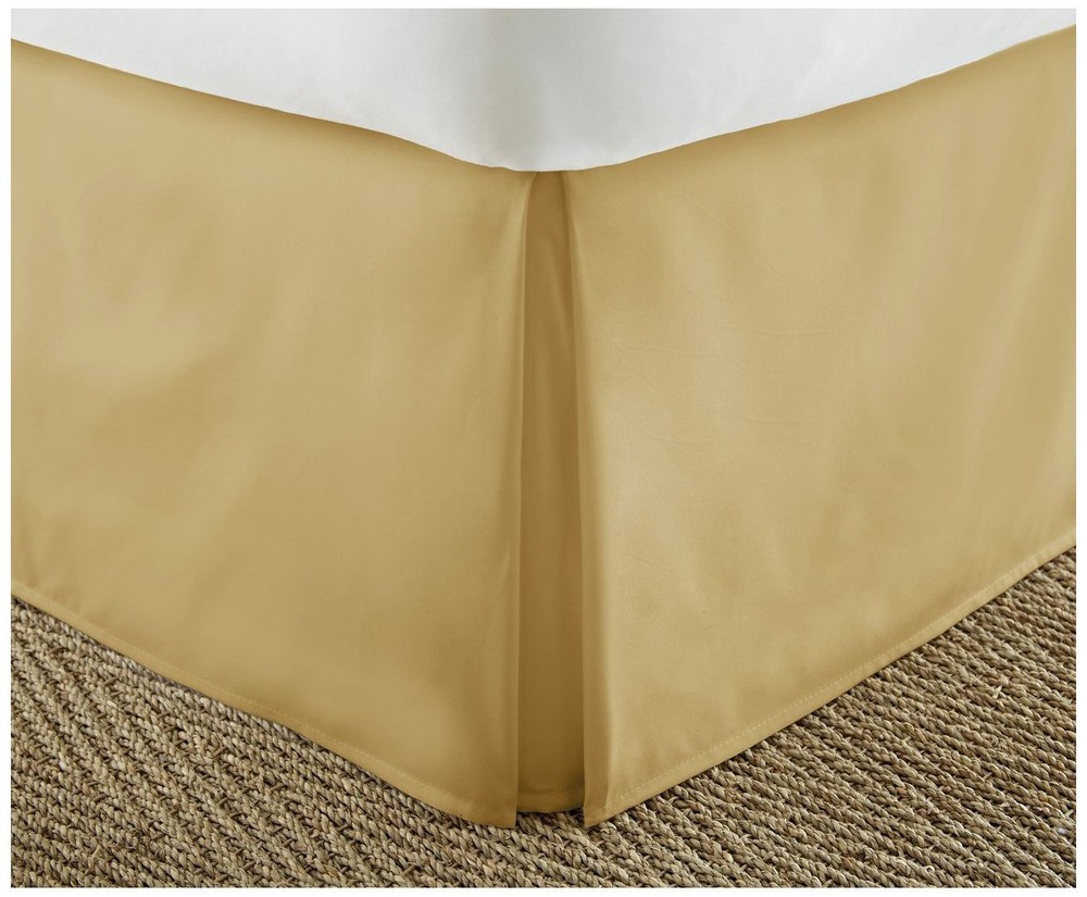 Love how this bed skirt instantly elevates my bedroom—the gold color is rich and elegant, and the microfiber feels so plush! The pleats add a polished look while hiding storage underneath, and it fits perfectly. No fading or shrinking after washes, and the 14-inch drop is just right. Great quality and style!