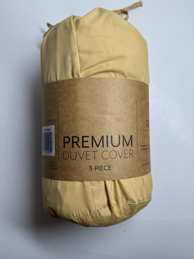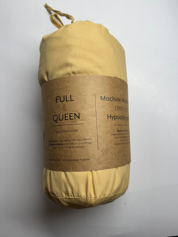 Elevate your bedroom with the ienjoy Home Duvet Cover Set, a trio of luxurious pieces that promise a soft and inviting touch to your sleeping space. The set features a full/queen size cover in a rich gold hue, offering a solid color design that brings a touch of elegance and warmth to any décor. Crafted from 100% polyester, the fill material ensures comfort and durability. Designed for the bedroom, this three-piece set includes a duvet cover that provides an easy update to your bedding ensemble. Its plush fabric is perfect for a restful night's sleep, and the simple yet sophisticated pattern complements a variety of room themes. With ienjoy Home's commitment to quality, this set is a timeless addition to your home.