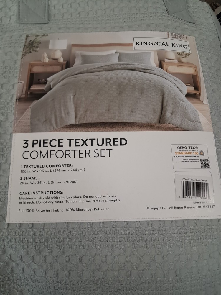 The Tommy Bahama IENJOY HOME WAFFLE TEXTURED KING/ CALI COMFORTER 3 PIECE SET in Green Mist is a contemporary comforter set perfect for all seasons. Made from a blend of polyester and cotton, this set includes a decorative pillow, pillow sham, and comforter in a size of King. The stylish waffle texture adds a touch of luxury to your bedroom décor, while the brand's attention to detail ensures a high-quality product. Ideal for those seeking a blend of comfort and style in their bedding.
