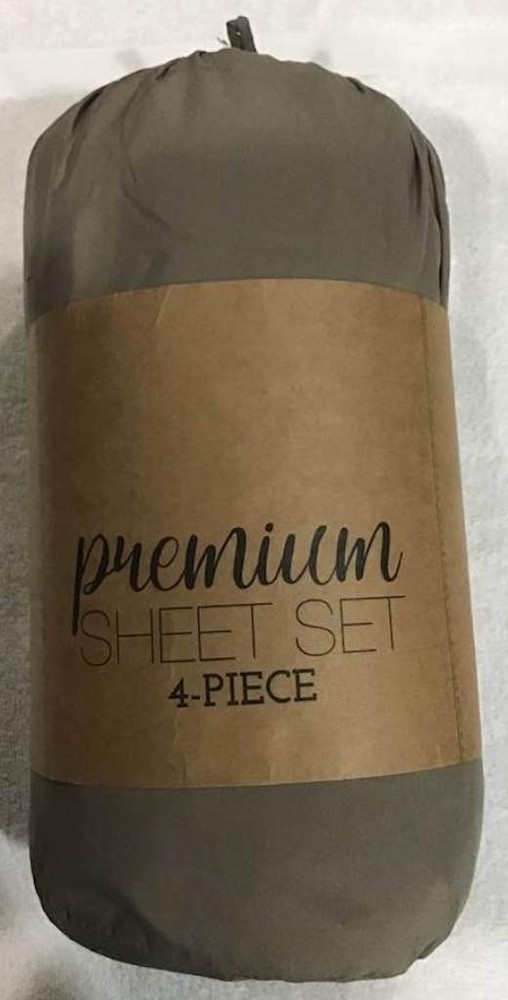 ***NEW*** IEnjoy Home 4Pc Ultra Soft Hypoallergenic Bed Sheet Set Taupe - Size: King HIGH QUALITY - Ultra soft microfiber fabric woven with the finest craftsmanship. Good hand feel and very cozy to sleep on. Fade, stain, shrink and wrinkle resistant. Machine wash in cold, and quick dries on tumble dry low. More durable than any cotton! Hypoallergenic and resistant to dust mites CLASSIC TAILORED LOOK - Set includes: One flat sheet, one fitted sheet (with deep pockets), and two pillowcases. Color: Tauper Size: King Material: 100% Microfiber Polyester Machine wash in cold. Dry on low heat. Size: King (4pc Sets) 1 Flat Sheet: 102 Iinch x 105 inch 1 Fitted Sheet: 78 inch x 80 inch + 14 inch 2 Pillowcases: 20 inch x 40 inch _57