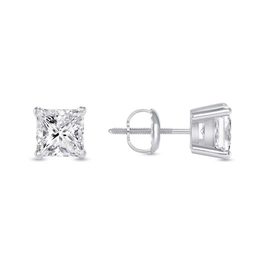 4 Ct Princess Cut Lab Grown/Created Diamond Stud Earrings Set in Genuine 14K White Gold These exquisite lab-grown/lab-created diamond stud ear rings are crafted out of solid, genuine 14k white gold and brilliant cut diamonds. This design of stud earrings is one of the most desired and classy of all. They are set in a unique, durable, 4-prong basket mounting with a threaded post and screw backs to provide for an optimum closure method and peace of mind while the earrings are being worn. The diamonds emit every shade of light and brilliance that a natural diamond would, and they are chemically, physically, and optically identical to mined diamonds originating from nature. Both have the same chemical composition and atomic structure, producing the very same durability, fire, radiance, and sparkle. Laboratory grown diamonds are a testament to the use of technology and human achievement, and they also play a vital role in reducing our environmental impact and creating truly conflict-free diamonds. And as for the question on everyone's minds regarding the authenticity and legitimacy of l ab-grown diamonds , YES, since these stones are 100% genuine diamonds in every way, they will register as positive (real) when tested with a diamond tester! There's no reason not to jump in! Brand --> Shine Brite With A Diamond Total Carat Weight (TCW) --> 4.0 Carat (2.0 Ct. (Approx. 7 mm x 7 mm) each) Metal --> Real , Genuine , Solid White Gold Metal Purity --> 14K (585) Gem Type --> 100% Lab-Grown/Lab-Created Diamond Design --> Studs Main Stone Shape --> Princess, Brilliant Cut Diamond Color --> F/G Diamond Clarity --> VS1/VS2 Diamond Cut --> Excellent Mohs Hardness --> 10 Setting --> 4-Prong Basket Type of Post or Back --> Screw Back Number of Stones --> 2 Country of Manufacture --> United States Origin of Stones --> State-of-the-Art Laboratory IGI Certification Included? --> Yes Availability --> Limited Quantity So What Will I Be Receiving in the Mail? A Pair of Genuine Solid 14 Karat White Gold Princess Brilliant Cut Lab Grown Diamond Stud Earrings . An Elegant and Luxury Jewelry Box. IGI Certificate & Certificate of Appraisal ($500+ orders automatically qualify for eBay's Authenticity Guarantee!) REFUNDS We guarantee your satisfaction and offer a 30-day money-back return (or exchange) policy. If for any reason you are unsatisfied with your purchase, please contact us first before opening up a case or leaving negative/neutral feedback so that we could make things right! We are here to help YOU! SHIPPING Most items will ship free within 1 business day with USPS Priority Mail for expedited delivery. Please select the FedEx shipping options at checkout for even faster (overnight and 2-day) delivery. CONTACT US We're always available by e-mail through eBay messages. Please feel free to contact us anytime with any questions or concerns you may have, and we will get back to you as soon as possible (typically within 1 business day). Thank you!