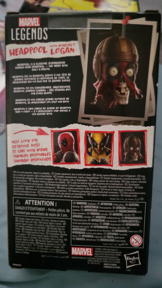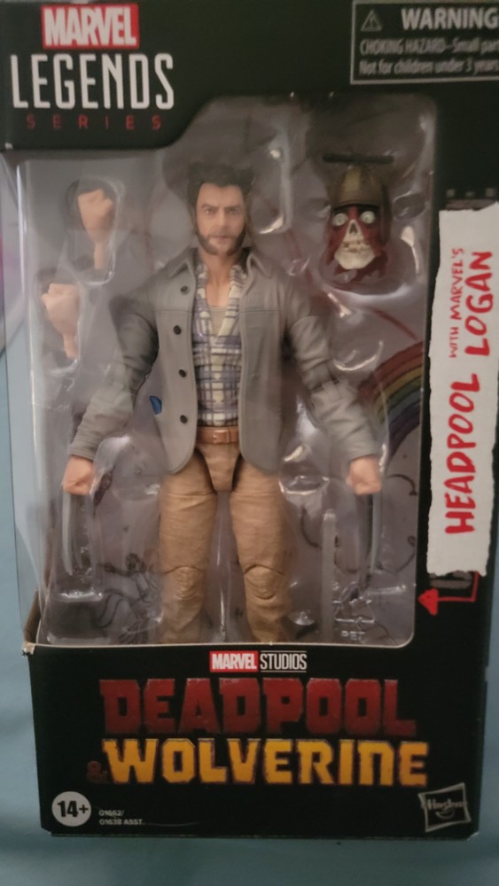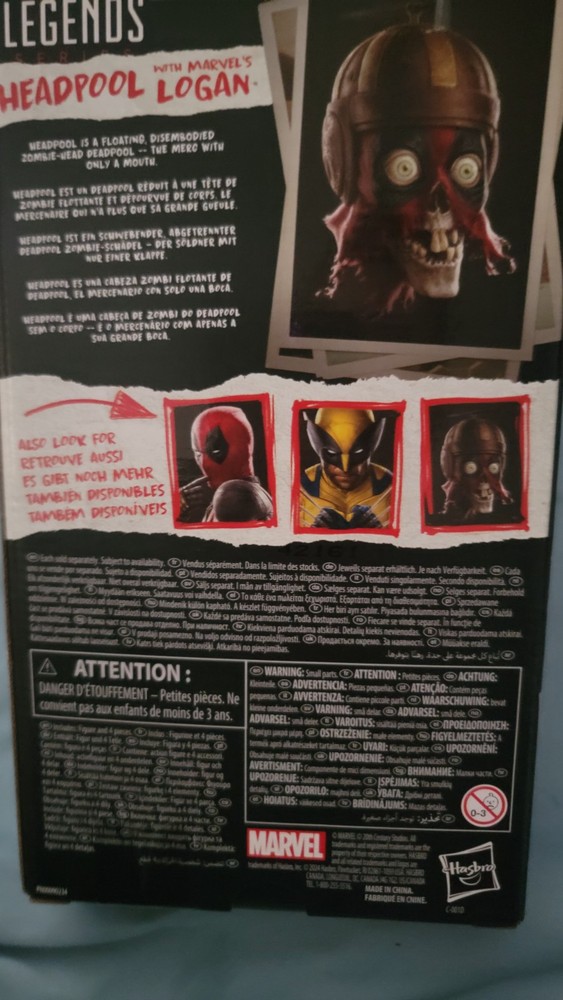 This is a new Marvel Legends action figure of Deadpool and Wolverine characters, featuring Headpool with Logan. The figure stands 6 inches tall and is made of plastic. It is part of the Deadpool franchise and Marvel Universe, from the Marvel Legends Series by Hasbro. The packaging is original and unopened, with a comic book heroes theme. This action figure was manufactured in 2024, representing the era of 2002-Now.