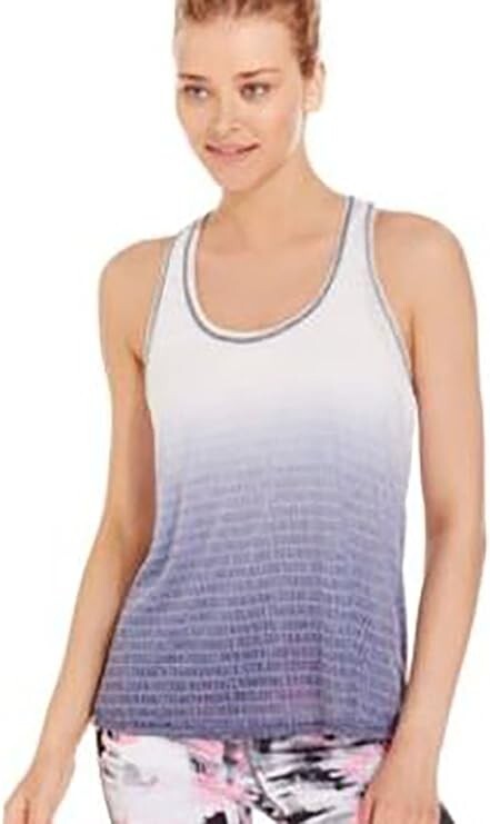 This beautiful navy blue ombre printed tank top from Ideology is perfect for any casual occasion. The sleeveless top features a round neck and a relaxed fit, making it comfortable and lightweight. The fabric type is a blend of 75% polyester and 25% rayon, making it soft and easy to wear. The tank top comes in size 2XL and is designed with a geometric pattern. The closure is a simple pull over design. The short sleeves with a sleeveless option make it versatile enough for all types of weather. The top is available for $34 and is a great addition to any wardrobe.