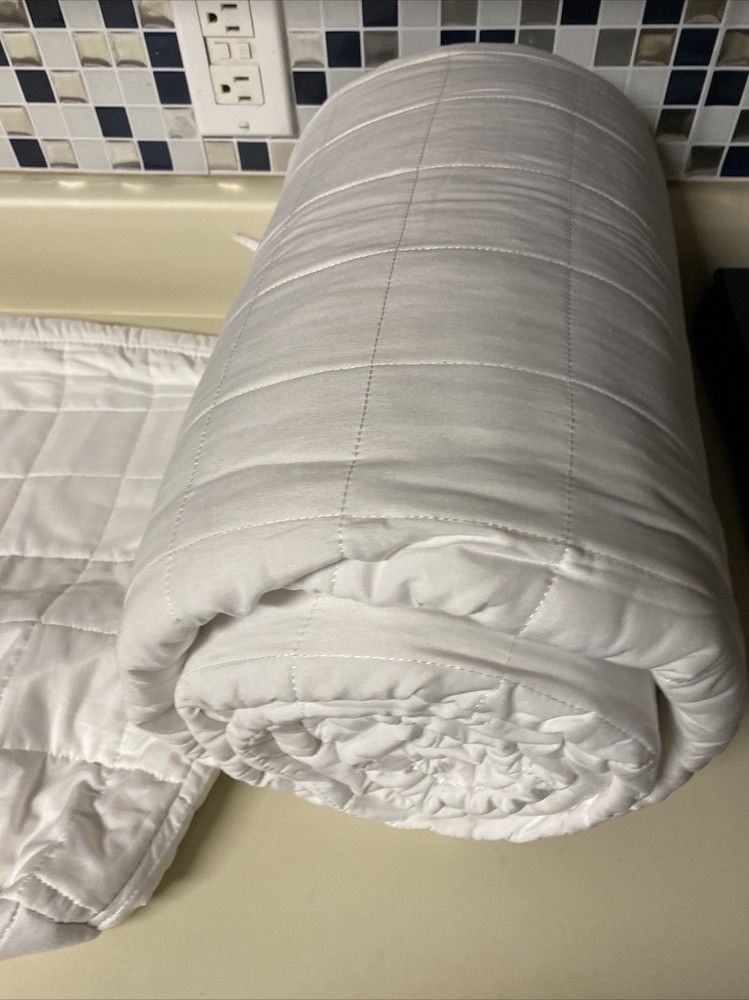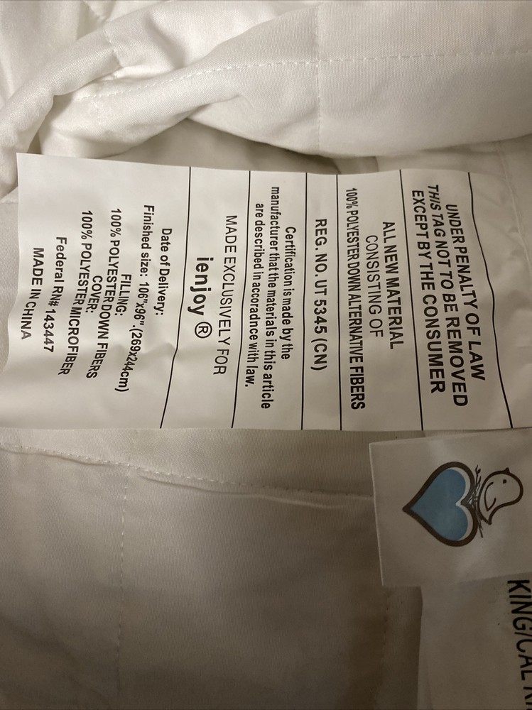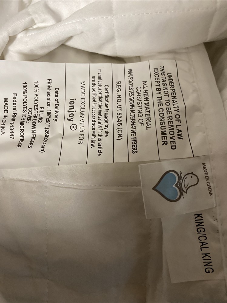 New never used. I did notice it has some padding that’s darker than fabric. So it looked like a few spots but it was the padding inside they used King size quilt and shams