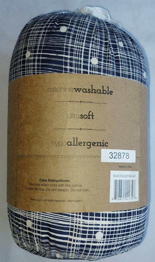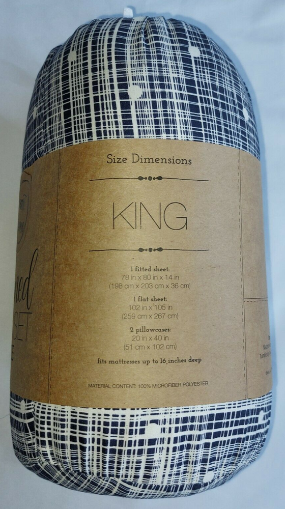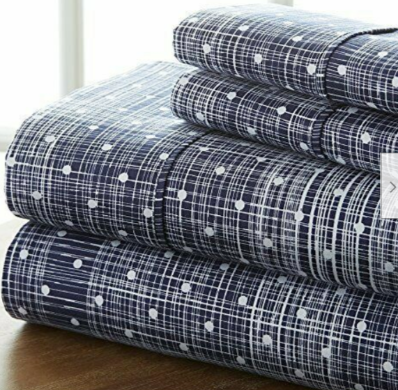 Ienjoy Heart & Home 4-Piece Patterned Sheet Set, King, Navy 1 Fitted Sheet: 78x80x14 inch 1 Flat Sheet: 102x105 inch 2 Pillowcases: 20x40 inch Fits Mattresses up to 16 Inches Deep Machine Washable Ultrasoft hypoallergenic