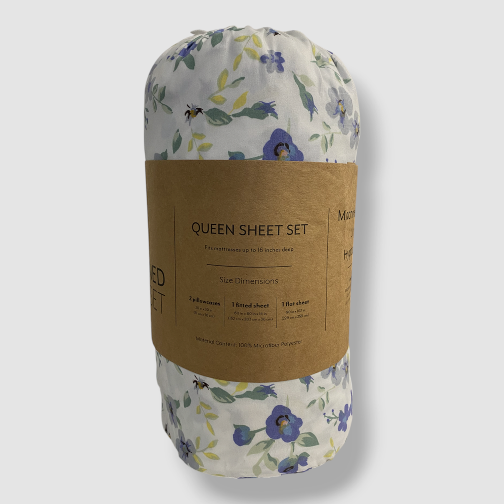 Ienjoy Home Blue Blossoms 4-Piece Bed Sheet Set, Queen Size Description 4-piece set includes 1 Flat Sheet, 1 Fitted Sheet, and 2 Pillowcases 1 Queen Fitted Sheet - 60"W x 80"L, 16" 1 Queen Flat Sheet - 90"W x 102"L 2 Standard Pillowcases - 20"W x 30"L Fade Resistant, Wrinkle Free, No Ironing Necessary Hypoallergenic and Antimicrobial for allergy sufferers and sensitive skin 16" deep pocket fitted sheets - perfect for oversized mattresses Superior weave for durability and a buttery-soft touch Microfiber Machine wash cold, tumble dry low Imported About Us We sell only 100% authentic clothing from new with tags to gently used. We have a 100% authentic or money back guarantee on every item we sell. Items are listed daily so make sure to put us on your favorite! We have been in business for over 10 years selling tens of thousands of designer items. We strive to meet your designer needs at a quality price! Payment Shipping Returns Payment accepted via paypal, credit/debit card. Shipping is usually within 24 hours of purchase (M-F). Super fast service. Tracked delivery. 100% satisfaction guaranteed. Please review our eBay return policy for more details.