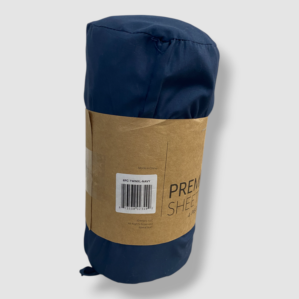 Ienjoy Home Blue Navy Luxury Ultra Soft Sheet 4-Piece Set Description TWIN XL 4-PIECE SET 1 Fitted Sheet: 39" W x 81” L +16" 1 Flat Sheet: 66" W x 104" L 2 Standard Pillowcases: 20" W x 30" Fits most mattresses up to 16 inches Wrinkle and fade resistant Cooling Buttery-soft touch Perfect option for those with allergies or sensitive skin Polyester Microfiber Machine wash Imported About Us We sell only 100% authentic clothing from new with tags to gently used. We have a 100% authentic or money back guarantee on every item we sell. Items are listed daily so make sure to put us on your favorite! We have been in business for over 10 years selling tens of thousands of designer items. We strive to meet your designer needs at a quality price! Payment Shipping Returns Payment accepted via paypal, credit/debit card. Shipping is usually within 24 hours of purchase (M-F). Super fast service. Tracked delivery. 100% satisfaction guaranteed. Please review our eBay return policy for more details.
