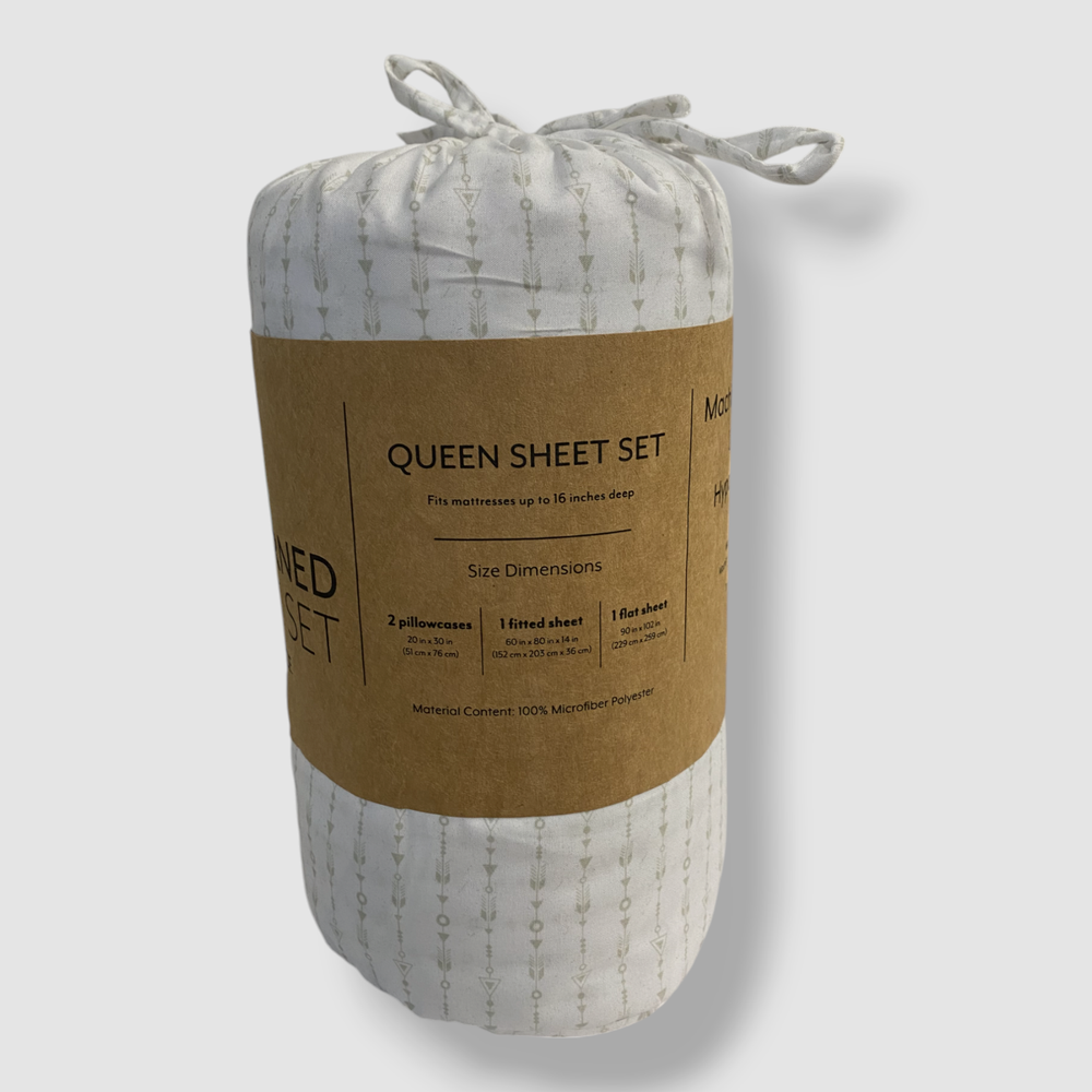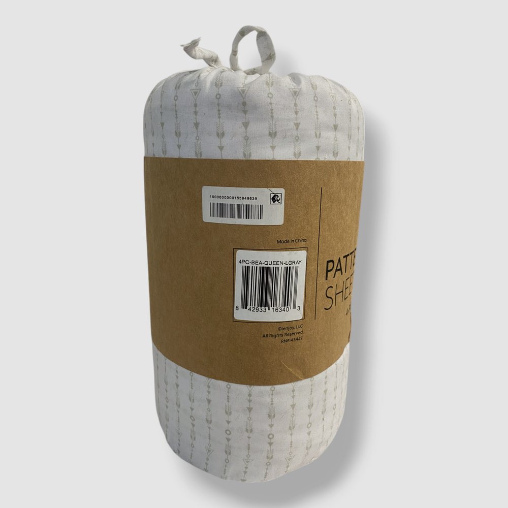 Ienjoy Home Gray Arrows Patterned Soft Microfiber 4-Piece Queen Sheet Set Description 4-piece set includes 1 Flat Sheet, 1 Fitted Sheet, and 2 Pillowcases 1 Queen Fitted Sheet- 60"W x 80"L, 16" 1 Queen Flat Sheet- 90"W x 102"L 2 Standard Pillowcases- 20"W x 30"L Fade Resistant, Wrinkle Free, No Ironing Necessary Hypoallergenic and Antimicrobial for allergy sufferers and sensitive skin 16" deep pocket fitted sheets Superior weave for durability and a buttery-soft touch Microfiber Machine washable Imported About Us We sell only 100% authentic clothing from new with tags to gently used. We have a 100% authentic or money back guarantee on every item we sell. Items are listed daily so make sure to put us on your favorite! We have been in business for over 10 years selling tens of thousands of designer items. We strive to meet your designer needs at a quality price! Payment Shipping Returns Payment accepted via paypal, credit/debit card. Shipping is usually within 24 hours of purchase (M-F). Super fast service. Tracked delivery. 100% satisfaction guaranteed. Please review our eBay return policy for more details.