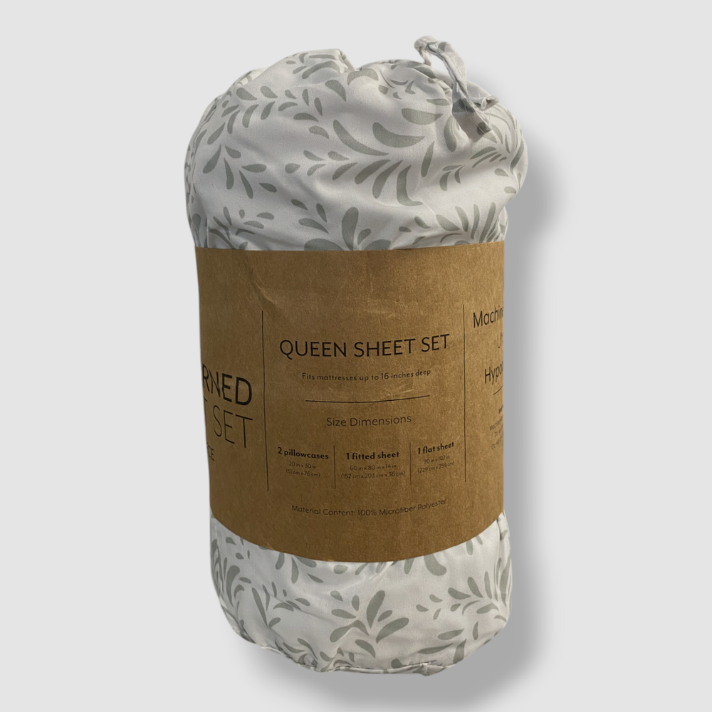 Ienjoy Home Gray Vine Bursts Microfiber 4-Piece Bed Sheet Set, Queen Size Description 4-piece set includes 1 Flat Sheet, 1 Fitted Sheet, and 2 Pillowcases 1 Queen Fitted Sheet - 60"W x 80"L, 16" 1 Queen Flat Sheet - 90"W x 102"L 2 Standard Pillowcases - 20"W x 30"L Fade Resistant, Wrinkle Free, No Ironing Necessary Hypoallergenic and Antimicrobial for allergy sufferers and sensitive skin 16" deep pocket fitted sheets - perfect for oversized mattresses Superior weave for durability and a buttery-soft touch Microfiber Machine wash cold, tumble dry low Imported About Us We sell only 100% authentic clothing from new with tags to gently used. We have a 100% authentic or money back guarantee on every item we sell. Items are listed daily so make sure to put us on your favorite! We have been in business for over 10 years selling tens of thousands of designer items. We strive to meet your designer needs at a quality price! Payment Shipping Returns Payment accepted via paypal, credit/debit card. Shipping is usually within 24 hours of purchase (M-F). Super fast service. Tracked delivery. 100% satisfaction guaranteed. Please review our eBay return policy for more details.