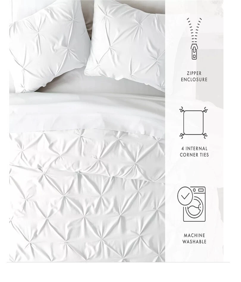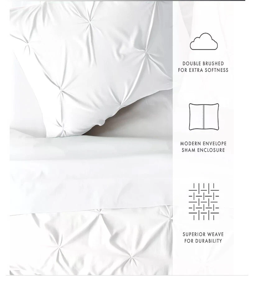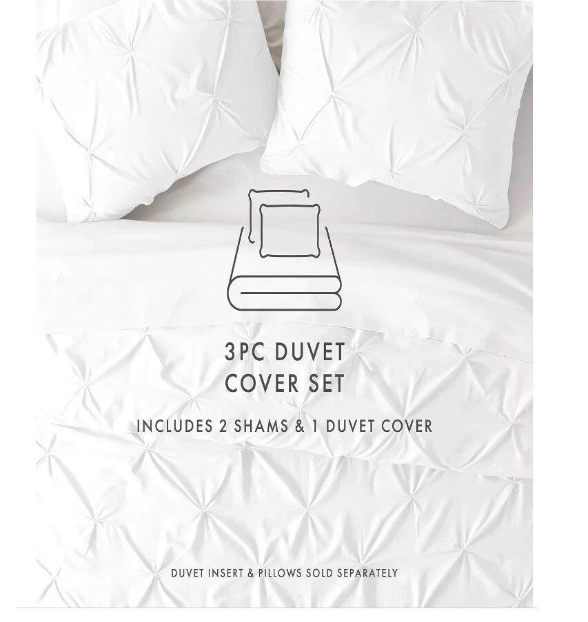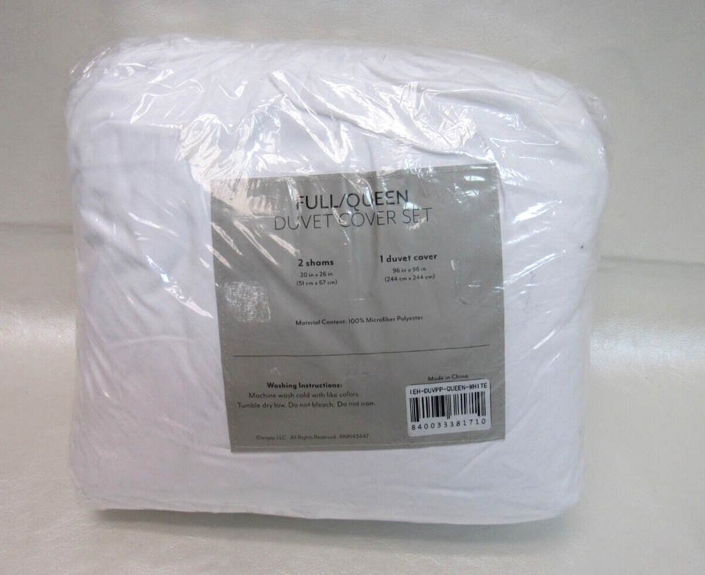 Ienjoy Home Home Collection Premium Ultra Soft 3 Piece Pinch Pleat Duvet Cover Set, Full/Queen T4103440 Enjoy the ultimate comfort and elegance with the 3-piece pinch pleat solid duvet cover set by ienjoy Home. Both the duvet cover and the matching shams are crafted with the finest microfiber that's softness is unsurpassed. This duvet cover set comes in 2 gorgeous colors guaranteed to match any style. Bed size - full/queen Duvet cover dimensions - 96" L X 96" W Standard shams dimensions - 26" L X 20" W, 2" flange Product weight - 3 lbs Set includes - 1 duvet cover, 2 standard shams Made with the highest quality imported microfiber yarns Superior weave for durability and a buttery-soft feel, zippered closure Made to be less allergic for sensitive skin Wicking properties keep you relaxed and dry Pinch pleat design 30-days manufacturer's warranty against defects Microfiber Machine Wash Cold, Tumble Dry Low, Do Not Bleach, Iron or Use Fabric Softener, Fade and Wrinkle Resistant Imported