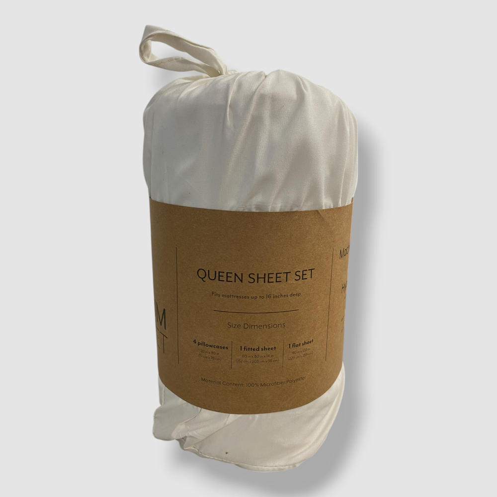 Ienjoy Home Ivory Style Simplified Soft Microfiber 6-Piece Queen Sheet Set Description Product size- Queen 6-piece set includes: 1 Queen Fitted Sheet - 60"W x 80"L, 16" 1 Queen Flat Sheet - 90"W x 102"L 4 Standard Pillowcases - 20"W x 30"L Superior weave for durability and a buttery-soft touch 14" deep pocket fitted sheets - fits mattress up to 16" Hypoallergenic for allergy sufferers and sensitive skin Fade Resistant, Wrinkle Free, No Ironing Necessary Microfiber Machine wash cold, tumble dry low Imported About Us We sell only 100% authentic clothing from new with tags to gently used. We have a 100% authentic or money back guarantee on every item we sell. Items are listed daily so make sure to put us on your favorite! We have been in business for over 10 years selling tens of thousands of designer items. We strive to meet your designer needs at a quality price! Payment Shipping Returns Payment accepted via paypal, credit/debit card. Shipping is usually within 24 hours of purchase (M-F). Super fast service. Tracked delivery. 100% satisfaction guaranteed. Please review our eBay return policy for more details.