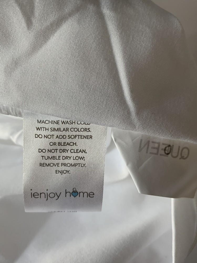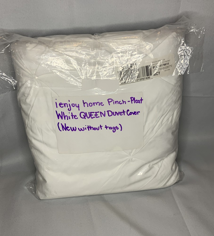 Ienjoy Home Pinch-Pleat White QUEEN Duvet Cover π. This item is new without tags Has no stains no rips or tairs Only includes duvet cover...