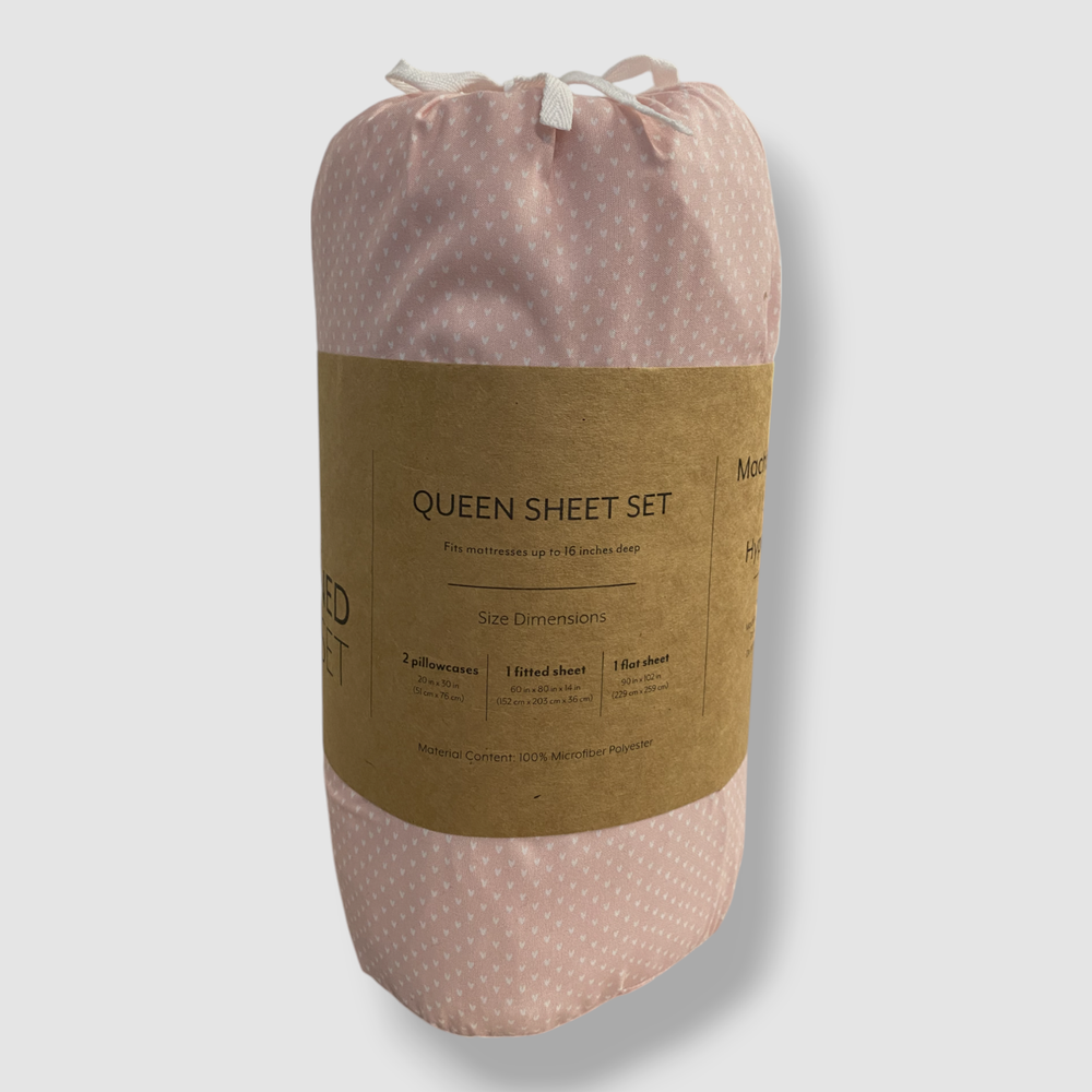 Ienjoy Home Pink Hearts Soft Microfiber Queen Sheet 4-Piece Set Description 4-piece set includes: 1 Queen Fitted Sheet - 60"W x 80"L 1 Queen Flat Sheet - 90"W x 102"L 2 Standard Pillowcases - 20"W x 30"L Superior 800 thread count weave for durability and a silky-smooth touch 16" deep pocket fitted sheets - perfect for oversized mattresses Fade Resistant, Wrinkle Free, No Ironing Necessary Microfiber Machine wash cold, tumble dry low Imported About Us We sell only 100% authentic clothing from new with tags to gently used. We have a 100% authentic or money back guarantee on every item we sell. Items are listed daily so make sure to put us on your favorite! We have been in business for over 10 years selling tens of thousands of designer items. We strive to meet your designer needs at a quality price! Payment Shipping Returns Payment accepted via paypal, credit/debit card. Shipping is usually within 24 hours of purchase (M-F). Super fast service. Tracked delivery. 100% satisfaction guaranteed. Please review our eBay return policy for more details.