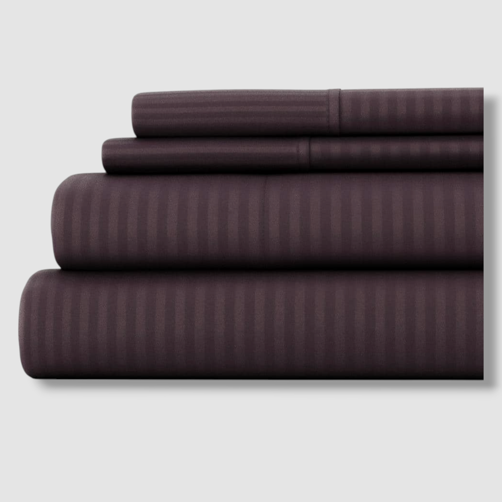 Ienjoy Home Purple Striped 4 Piece Bed Sheet Set Queen Description 4-piece set includes 1 Flat Sheet, 1 Fitted Sheet, and 2 Pillowcases 1 Queen Fitted Sheet - 60"W x 80"L 1 Queen Flat Sheet - 90"W x 102"L 2 Standard Pillowcases - 20"W x 30"L Superior 800 thread count weave for durability and a silky-smooth touch 16" deep pocket fitted sheets - perfect for oversized mattresses Fade Resistant, Wrinkle Free, No Ironing Necessary Microfiber Machine wash cold, tumble dry low Imported About Us We sell only 100% authentic clothing from new with tags to gently used. We have a 100% authentic or money back guarantee on every item we sell. Items are listed daily so make sure to put us on your favorite! We have been in business for over 10 years selling tens of thousands of designer items. We strive to meet your designer needs at a quality price! Payment Shipping Returns Payment accepted via paypal, credit/debit card. Shipping is usually within 24 hours of purchase (M-F). Super fast service. Tracked delivery. 100% satisfaction guaranteed. Please review our eBay return policy for more details.