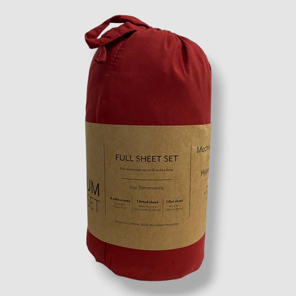 Ienjoy Home Red Luxury Soft Microfiber 6-Piece Queen Sheet Set Description FULL 6-PIECE SET 1 Fitted Sheet: 54" W x 75" L + 16" 1 Flat Sheet: 81" W x 96" L 4 Standard Pillowcases: 20" W x 30" L Polyester Microfiber Machine wash Imported About Us We sell only 100% authentic clothing from new with tags to gently used. We have a 100% authentic or money back guarantee on every item we sell. Items are listed daily so make sure to put us on your favorite! We have been in business for over 10 years selling tens of thousands of designer items. We strive to meet your designer needs at a quality price! Payment Shipping Returns Payment accepted via paypal, credit/debit card. Shipping is usually within 24 hours of purchase (M-F). Super fast service. Tracked delivery. 100% satisfaction guaranteed. Please review our eBay return policy for more details.