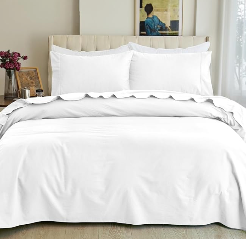 The Ienjoy Home Ultra Soft Flannel 4-Pc. Sheet Set in King size and white color is a luxurious addition to any bedroom. Made from 100% cotton flannel, these sheets provide a cozy and comfortable feel. The modern solid color design adds a touch of elegance to the room, while the protective bag packaging ensures easy storage and transport. Care instructions recommend machine washing and tumble drying for convenience. Made in Pakistan, this sheet set is perfect for creating a relaxing and stylish sleep environment.
