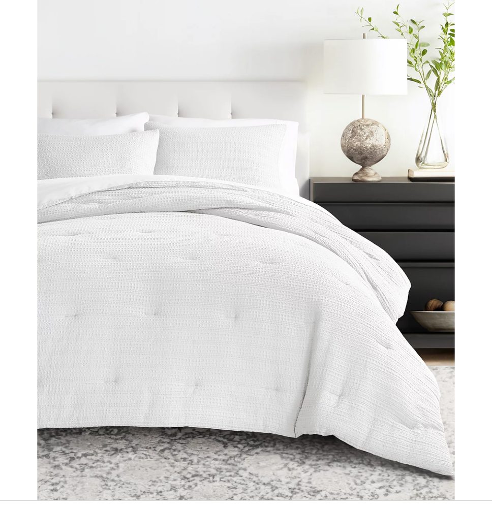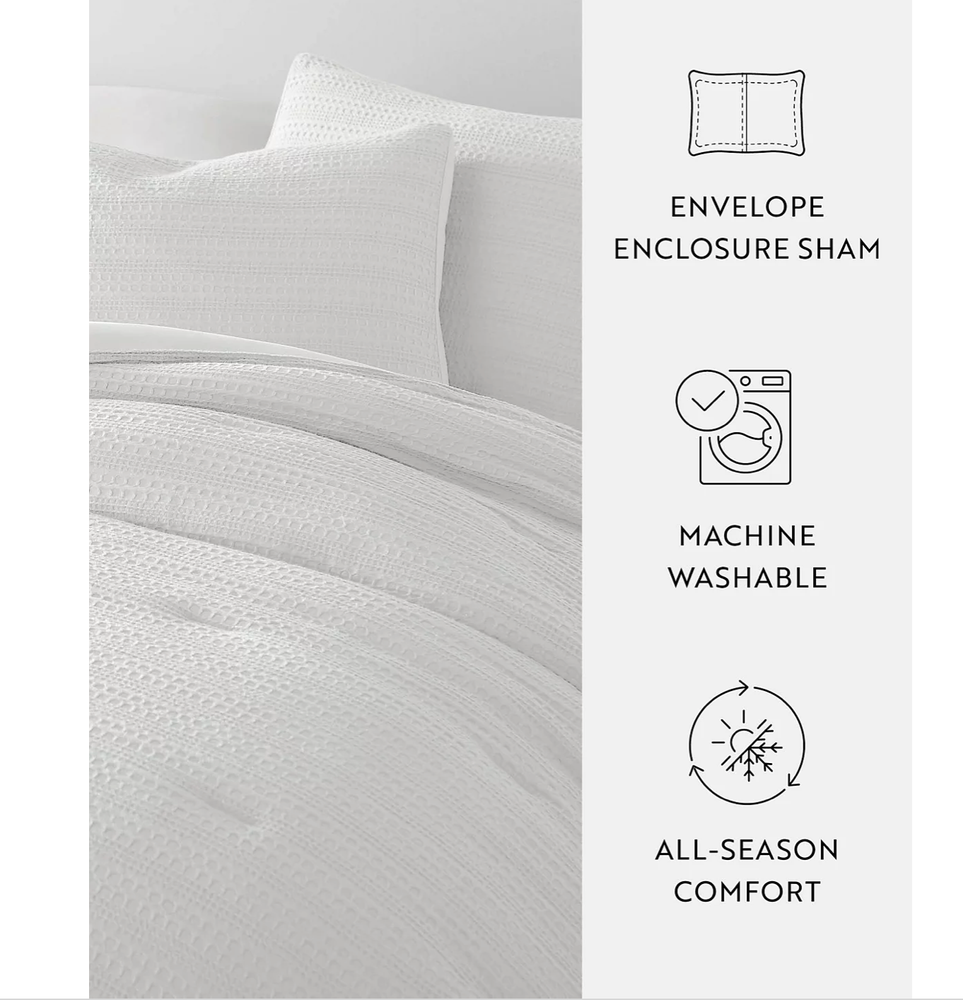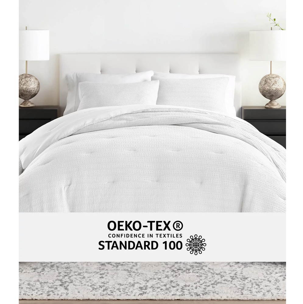 Indulge in the epitome of comfort with our exquisite 3 piece waffle textured comforter set. Its polyester fill ensures a dreamy sleep experience, while the soft pre-wash finish and double-brushed fabric provide a luxurious touch. Plus, its oversized dimensions are perfect for extra deep mattresses.