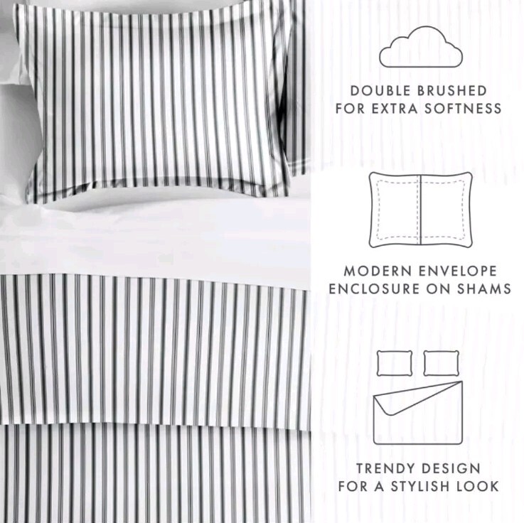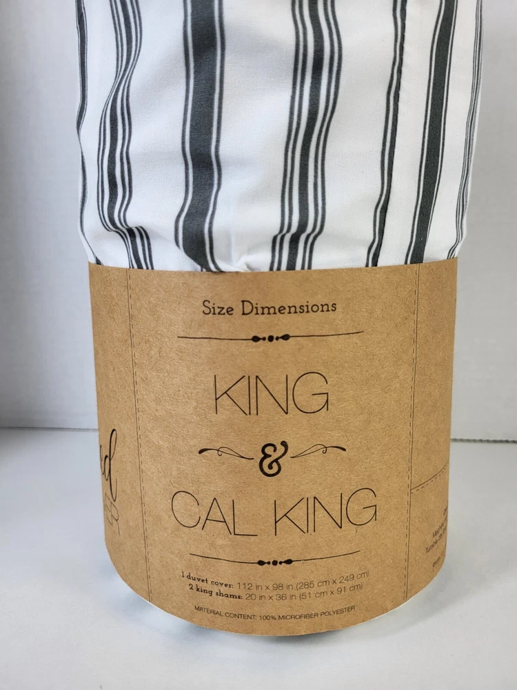 Ienjoy Premium duvet cover three piece set gray and white striped King/Cali King size in new condition. FEATURES Zippered closure and duvet corner ties Superior weave for durability and a soft touch Perfect option for those with allergies or sensitive skin Suitable for a wide range of styles such as, mid-century modern, coastal, farmhouse, industrial, glam, rustic, modern, boho, chic; as well as contemporary or traditional Fabric Contents - 100% 95 GSM Microfiber Polyester Easy Care - Machine wash cold with similar colors. Do not add softener or bleach. Do not dry clean. Tumble dry low; remove promptly. Available in a variety of unique designer patterns including florals, geometrics, and stripes, making it the perfect new addition to your room. SIZE GUIDE KING/CAL-KING - 1 duvet cover (112 in x 98 in - insert not included) and 2 king pillow shams (20 in x 36 in) GENERAL INFORMATION All items are sold AS IS. Items are in pre-owned condition unless otherwise stated. Please read the listing description thoroughly as we do our best to describe the item to the best of our ability. Photos make the best description! It is highly recommended to carefully examine each and every photo in the listing. Never hesitate to ask a question you may have about an item. We will answer any question within 1 business day. PAYMENT DISCLOSURE Please pay within 48 hours of purchase. If your purchase is unpaid after 5 days, we will cancel and relist the item. The delivery date will be according to the USPS, UPS, or Fed Ex tracking system. We are not responsible for your package arriving late once the item leaves our store! SHIPPING DISCLOSURE Interested in multiple items from our always-growing eBay Store? No problem! We always combine shipping! A combined invoice will be sent prior to payment. If you pay prior to a combined invoice being sent, you are agreeing to pay the quoted shipping cost unless an agreement was made prior to the purchase through written communication. We take great pride in packaging our products securely. We know that delivery services have a tendency to throw packages around. We strive to make sure all packages arrive as safely as they possibly can. We also ship in a timely manner. Item will be shipped within 1 business day of received payment. If an item arrives damaged, please keep the item and ALL packaging. We must be contacted within 24 hours. You may be required to ship the item back or take the damaged item to a facility for inspection. Please contact us first with any issues before contacting eBay. RETURN DISCLOSURE We accept returns within 30 days of delivery, however the buyer is responsible for a 10% restocking fee. Buyer is responsible for return shipping costs. Please contact us first before returning. All clothing items include measurements to reduce returns. They are usually found in the "Item Description" but sometimes are included in the photos. Compare the measurements to your own clothing before purchasing! Please ask any questions you may have prior to purchasing. We accept returns within 30 days of delivery, however the buyer is responsible for a 10% restocking fee. Buyer is responsible for return shipping costs. Please contact us first before returning. All clothing items include measurements to reduce returns. They are usually found in the "Item Description" but sometimes are included in the photos. Compare the measurements to your own clothing before purchasing! Please ask any questions you may have prior to purchasing.