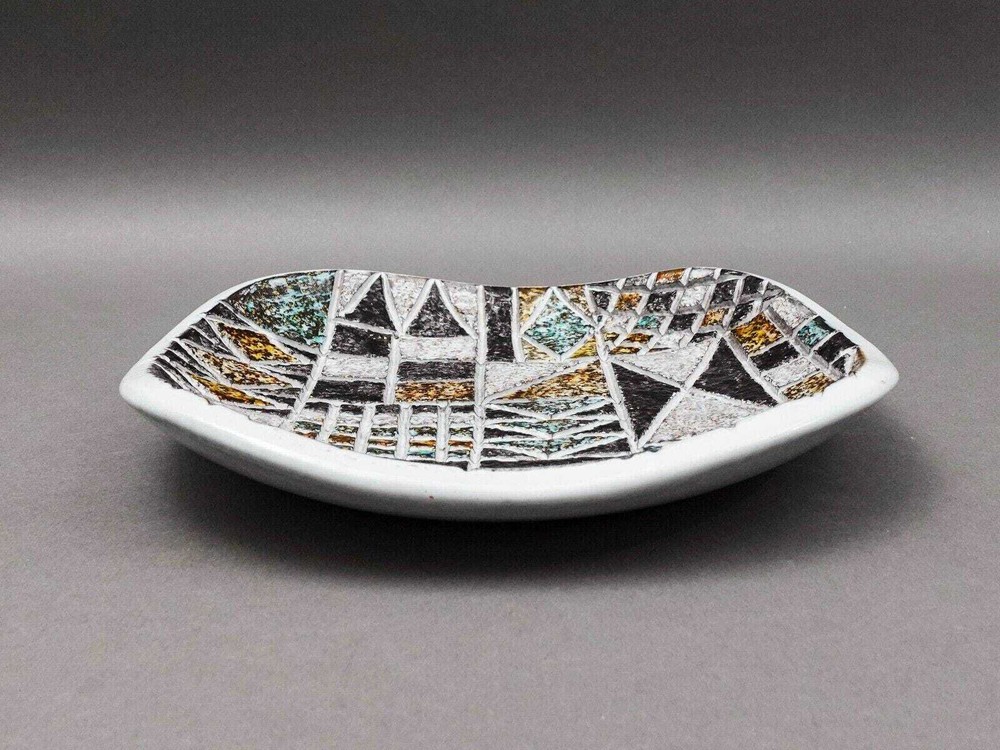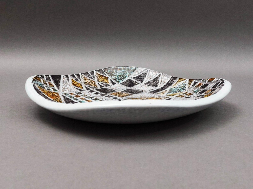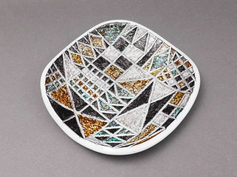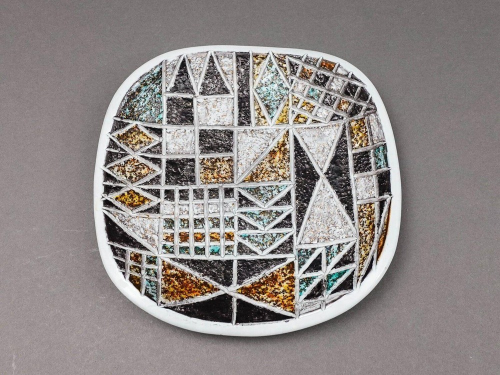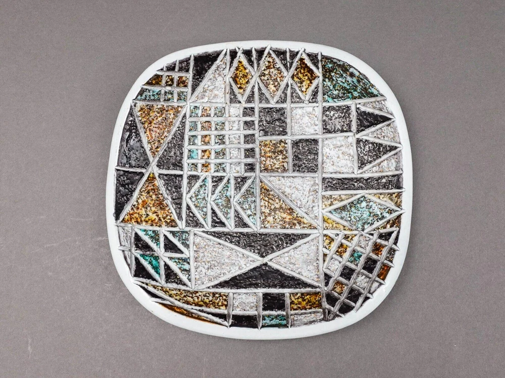 Ingrid Atterberg Upsala Ekeby Sweden Mid Century Modern Studio Pottery Geometric Plate Tray. Measures approximately 9 7/8" long, 9 7/8" wide, 1 1/2" high. Excellent pre-owned condition. Item is being sold as found. No chips, cracks or repairs. Overall fantastic appearance!!!