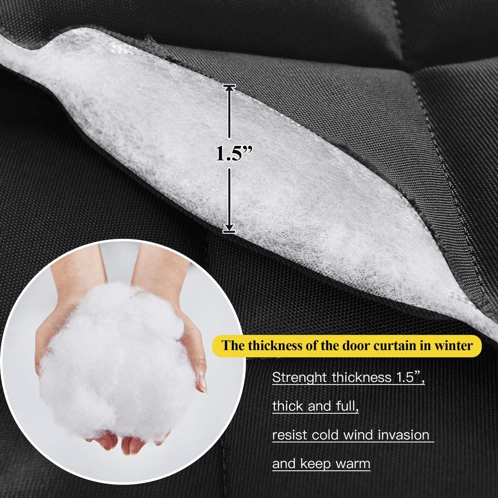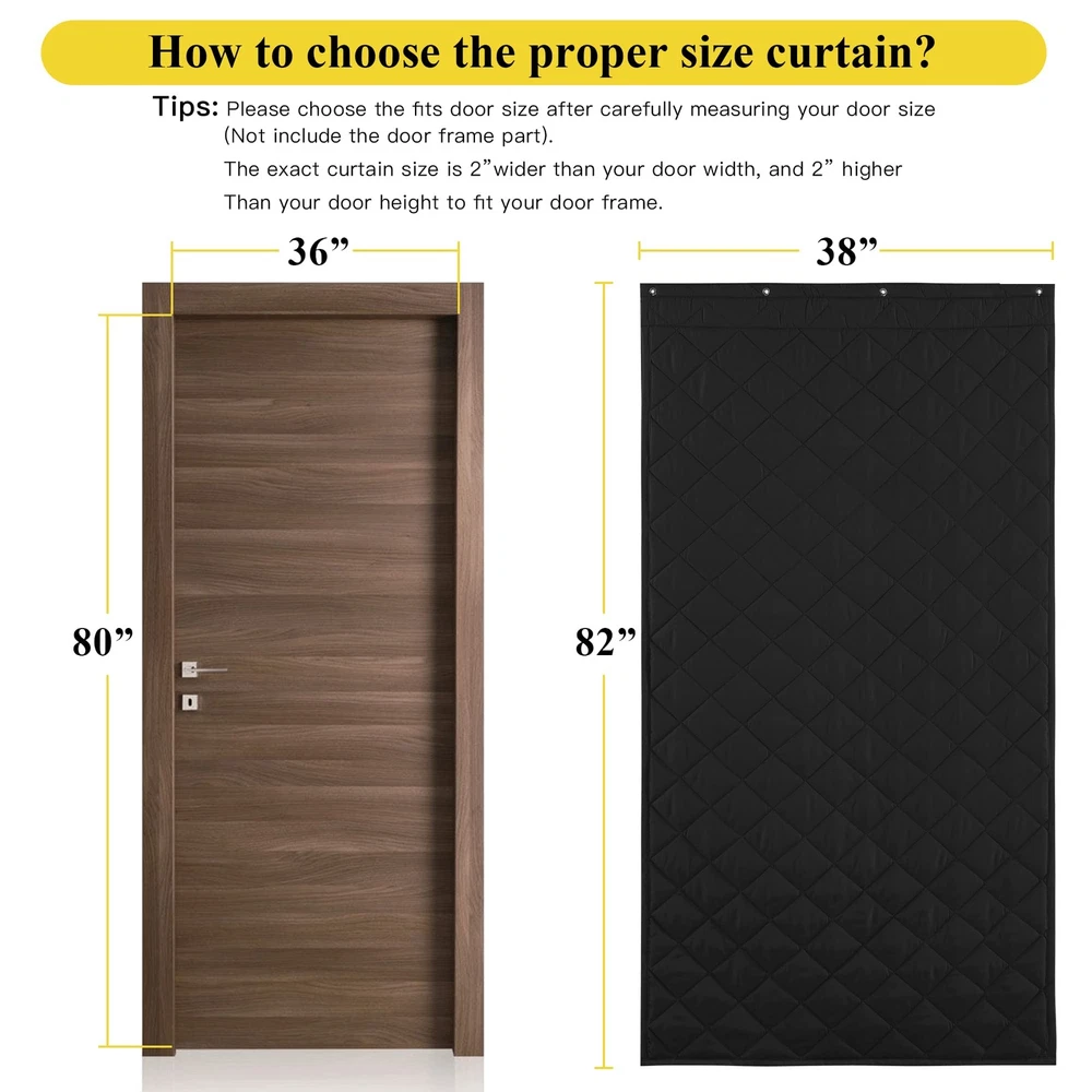 Warm in winter and cool in summer, used in air-conditioned rooms. INSULATED DOOR CURTAIN combining simplicity and elegance to beautify your home. Function: waterproof, windproof, moistureproof, suitable for all walks of life Insulation Protection: Waterproof, reduces ambient noise, protects against blizzard cold No Perforation: Widen hook & loop tape, which will not leave perforations in the door Easy to Care: Keep the insulated curtains clean by wiping lightly with a cloth. Various Occasions: home, living room, terrace, greenhouse, supermarket, school, hospital, shop, restaurant, restaurant, warehouse, factory, air-conditioned room, etc. Note: Due to the difference between different monitors, the picture may not reflect the actual color of the item.If you have any questions during the purchase or use, please feel free to contact us by email. Wish you a happy life! Door Curtain Size: The curtain size is 38'' x 82''- Fits door size max to: 36'' x 80''. Before purchasing, please carefully measure your door size (NOT include door frame part) and order that size. Tempeture Protection: Filling with fluffy cotton fiberfill to avoid heat loss. It can teffectively resisting the cold wind, maintaining indoor temperature, save electricity and money, keep warm in winter and stay cool in summer. Multi Functional: waterproof,soundproof and moisture resistant, wear resistant and cold resistant ,the inner soft cotton lining is thick enough to keep your house warm and comfortable during the cold winter, strong against the cold. Multiple Hanging Methods: There are three ways to use it to make sure the curtain doesn't come off easily, one is to use widening loops on the top of the door curtain, the second is to use push pins to enhance the adhesion and the other is use the curtain rod to pass through the rod pocket. Widely Used: The magnetic door curtain can be used as a temporary door and great for interiors/exterior doors, air-conditioned room, family, supermarket, school, hospital, shopping mall, apartment, restaurant, public place, warehouse, factory etc.