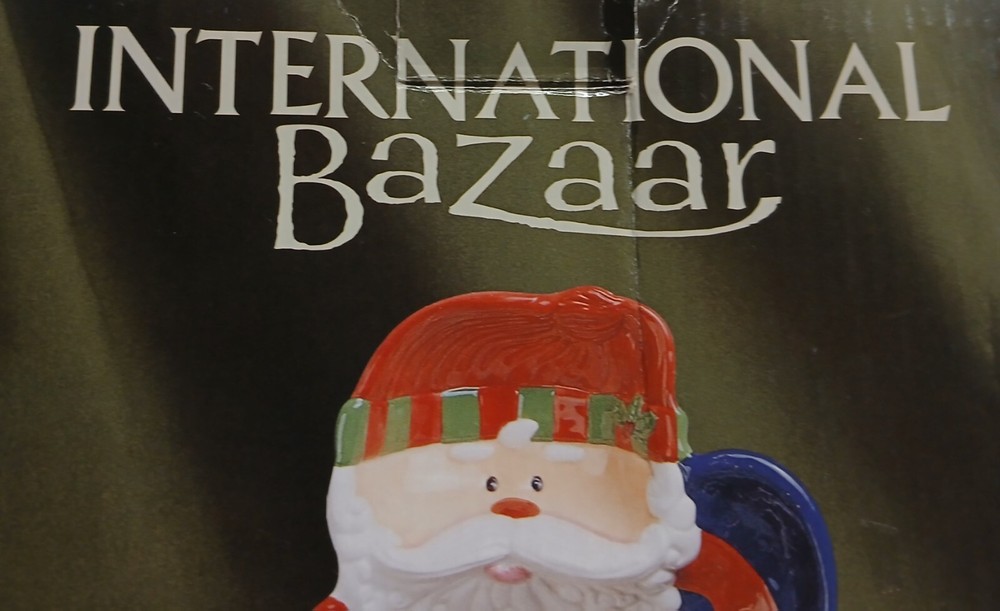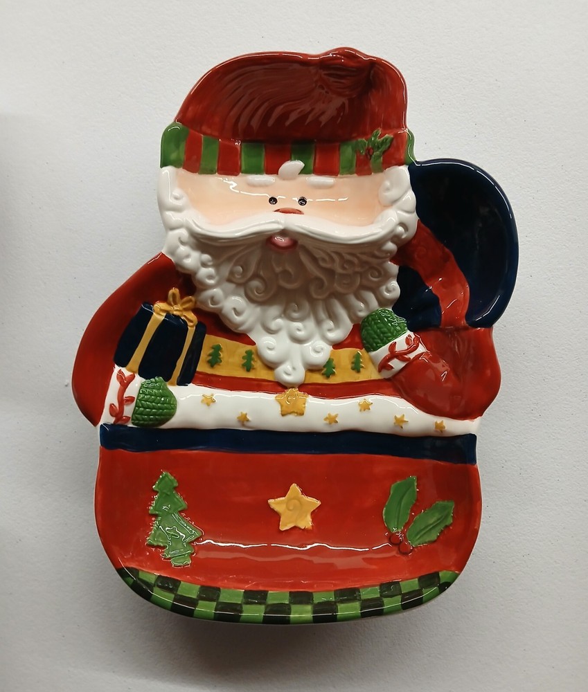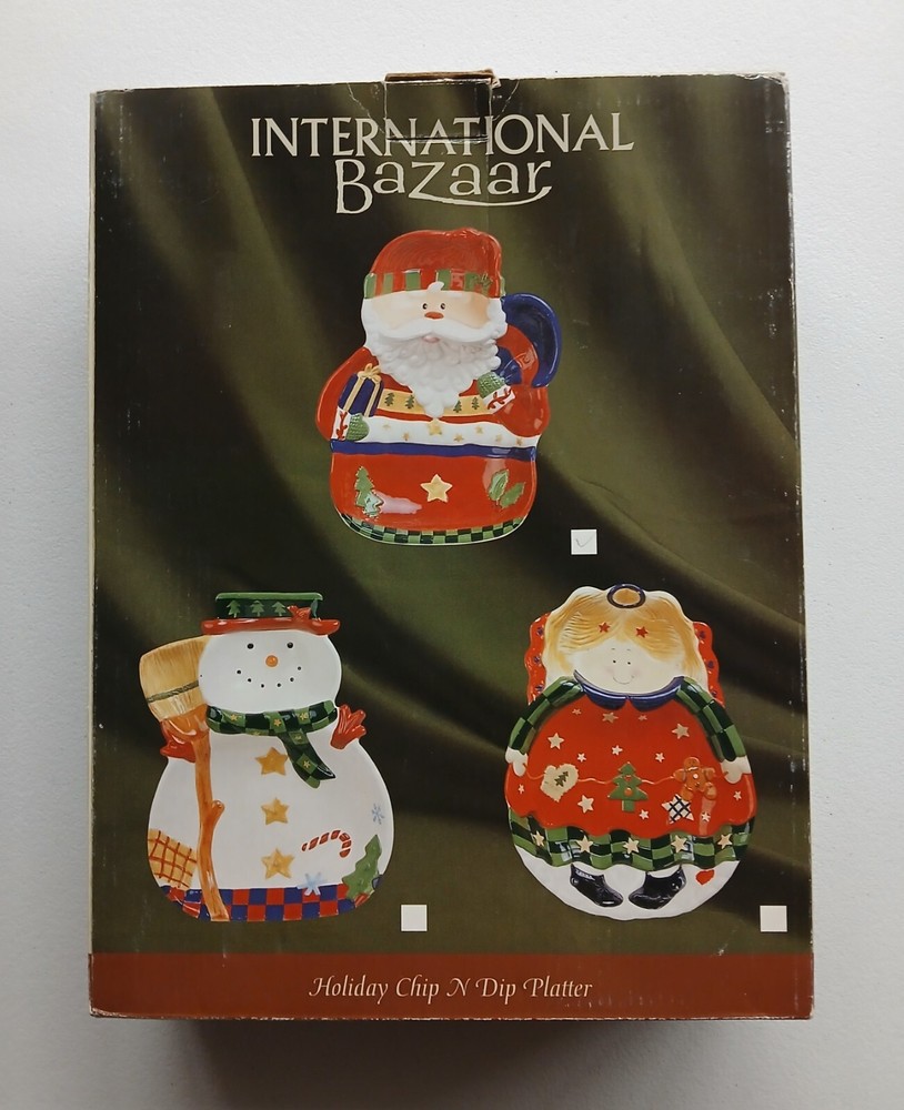 This International Bazaar platter is the perfect addition to your Christmas dinnerware collection. With a festive chip and dip design, this ceramic platter features a glossy finish and multicolor accents of Santa Claus. Measuring 13 inches in length, 10 inches in width, and 2 inches in depth, this platter is ideal for serving your holiday guests. Whether you're hosting a Christmas party or simply enjoying a family meal, this platter is sure to impress. Add it to your kitchen, dining, or serving collection today!
