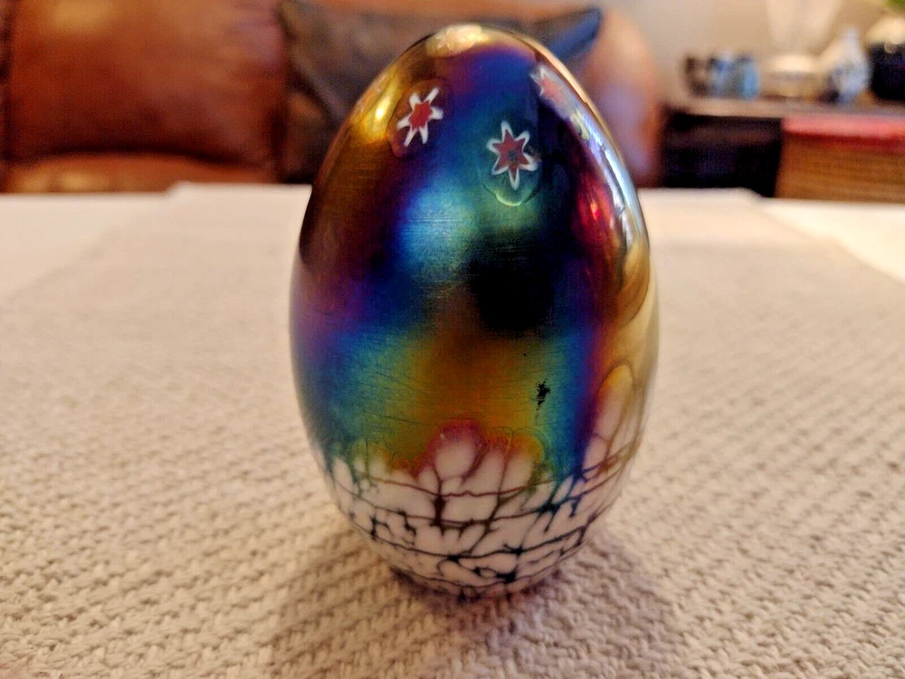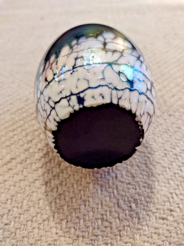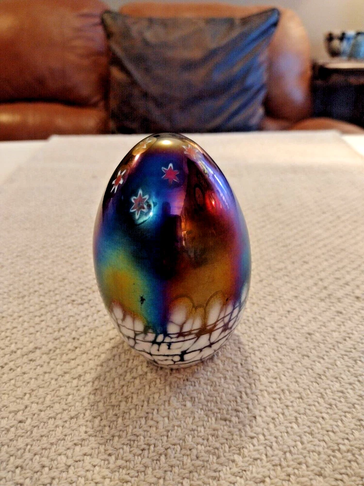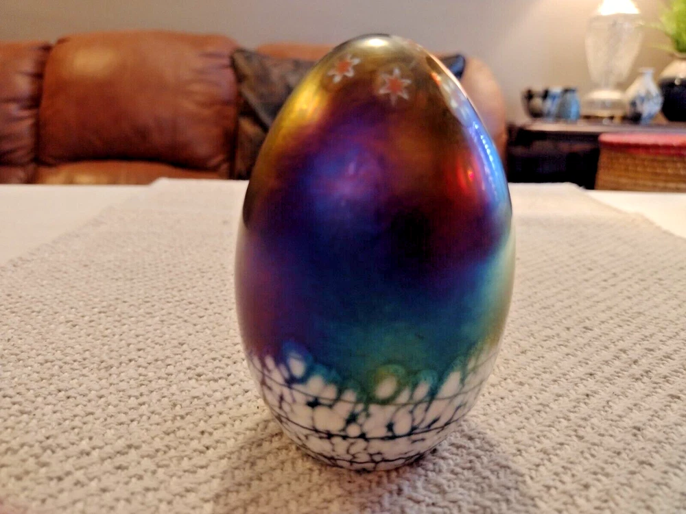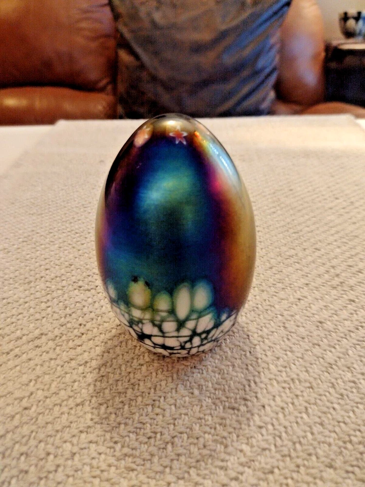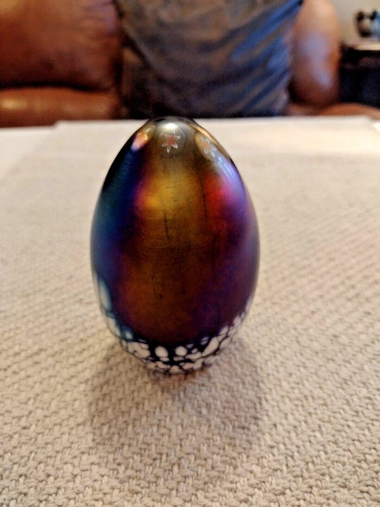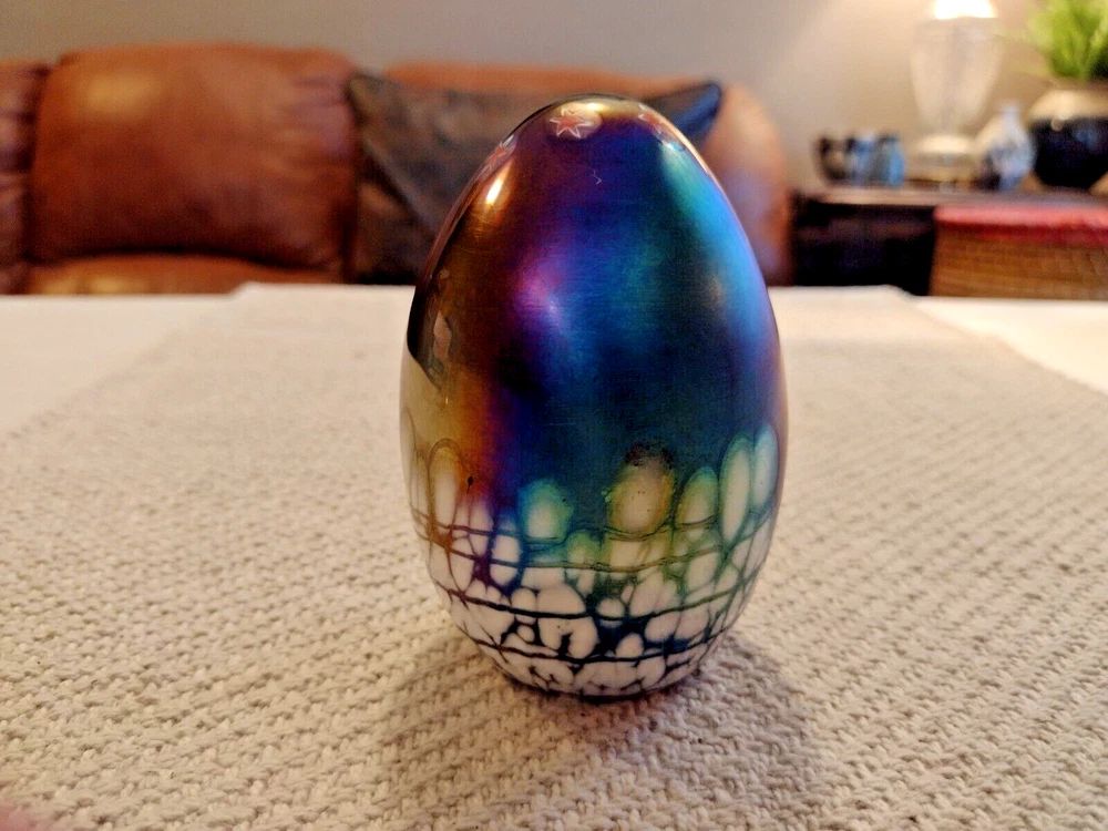 Iridescent Studio Art Glass Egg Shaped Paperweight Measures - 4" Tall Very Good Used Condition