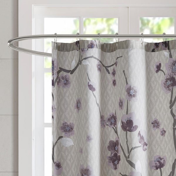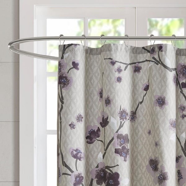 Put a modern touch on your decor with the Madison Park Isabella Collection. This 100% cotton shower curtain features an allover cherry blossom design with branches. The soft grey background pairs beautifully with the purple and grey flowers for the perfect update to your space. Machine washable for easy care, this shower curtain is also OEKO-TEX certified meaning it does not contain any harmful substances or chemicals for the best in quality comfort and wellness. Complete the look with coordinating bedding, available and sold separately.