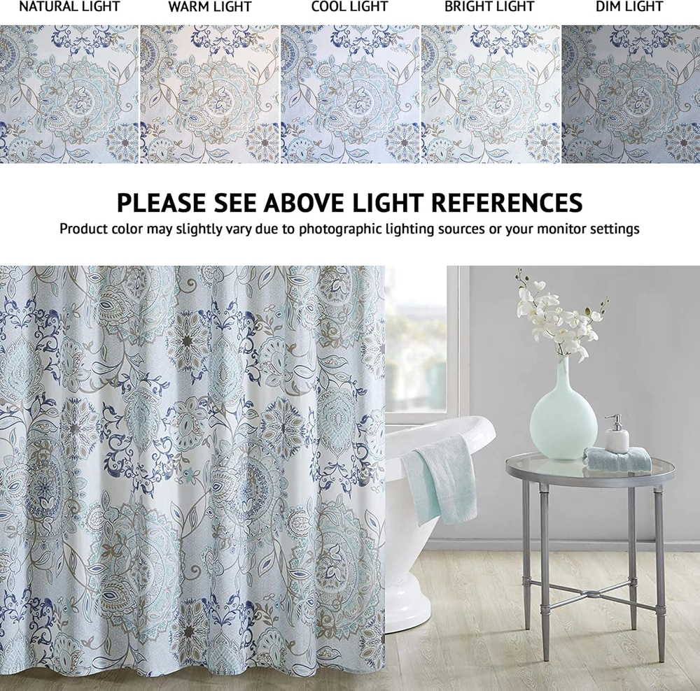 Absolutely love this shower curtain! The watercolor floral design is stunning, adding a chic boho vibe to my bathroom. The 100% cotton percale feels high-quality and hangs beautifully. It's the perfect size, provides great privacy, and instantly elevates the space. The soft blue tones and intricate medallion pattern make it a standout piece—so much better in person! Highly recommend for a fresh, modern look.