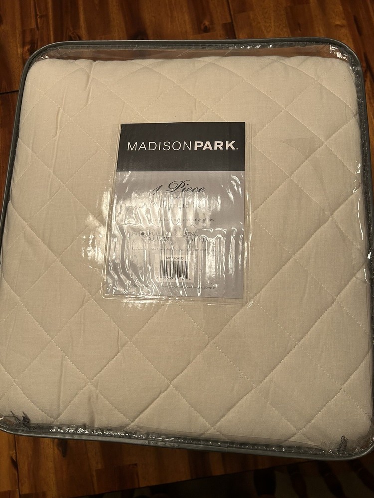 Create a luxurious sleeping environment with the Madison Park Ivory Miller Tailored Bedspread Set. This 4-piece bedding set includes a decorative pillow, quilt, and two standard shams. The diamond pattern adds a touch of elegance to any bedroom decor. The set is designed for a full/queen size bed and comes in a beautiful ivory color. It is perfect for anyone looking to add a touch of sophistication to their bedroom. Transform your bedroom into a cozy and comfortable retreat with this Madison Park bedding set.