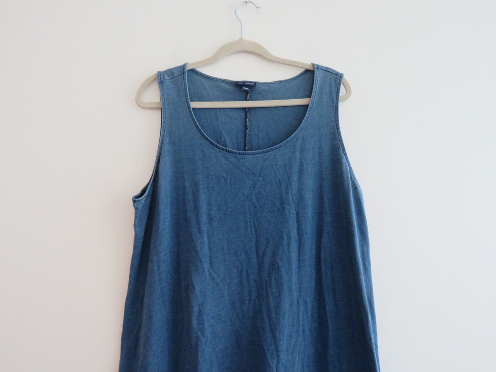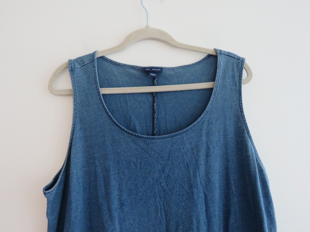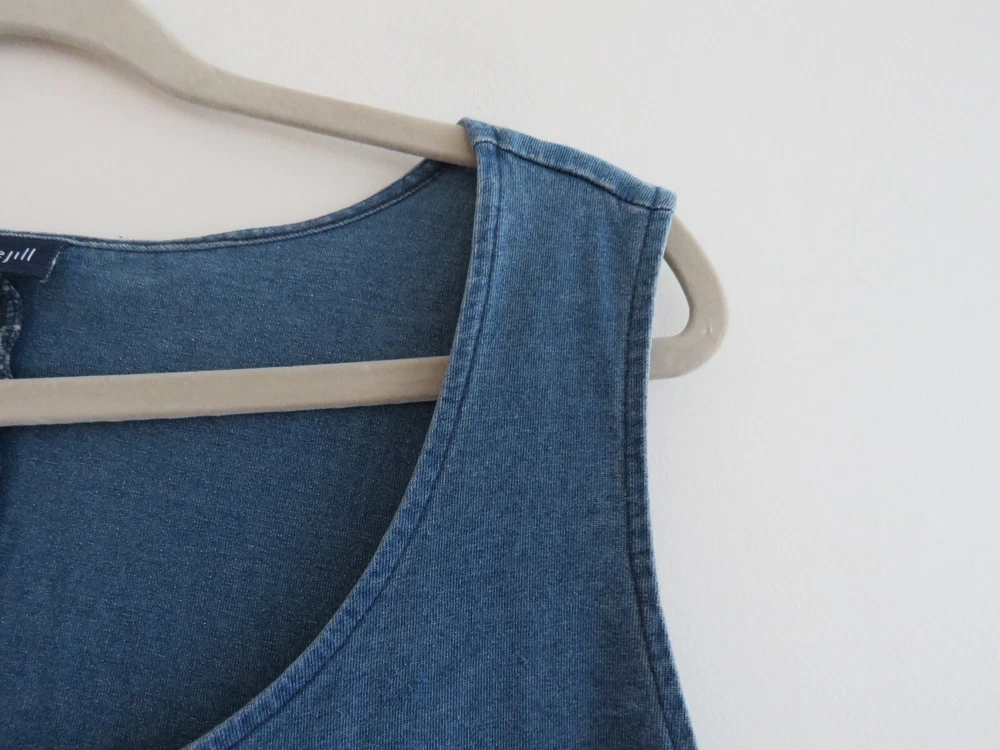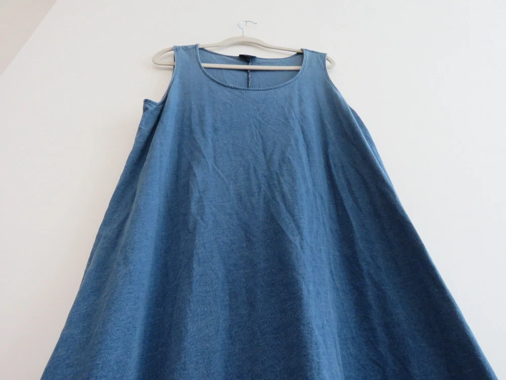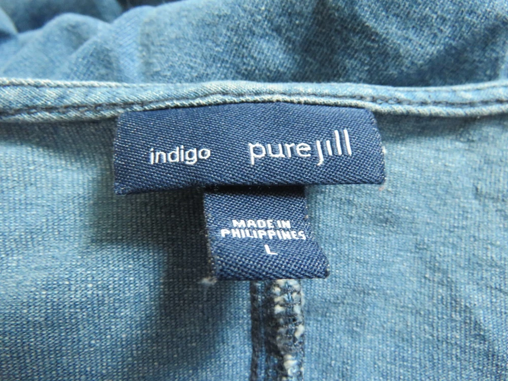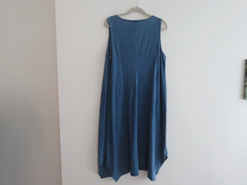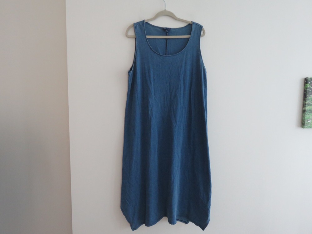 J. JILL Pure Jill Indigo Knit Dipped Hem Midi Dress in Blue Denim - Women's Size L Made from 100% cotton Features/description: A sleeveless A-line dress with a casual appeal that looks like denim and has a soft drape Round neckline Back center seam Angled side vents shape the hemline Below knee length Sleeveless Tags: talbots comfy eco friendly classic cozy comfort anthropologie madewell everlane aran fair isle ethnic neutral lagenlook eileen fisher osei duro garnet hill j jill handmade europe european japanese jil sander isabel marant nanushka apiece apart gudrun sjoden terry macey cp shades lounge loungewear cog the big smoke toast kloke flax prairie pact sustainable minimal neutral versatile lounge alo vuori rundholz oska ischiko ymc minimalist abstract steampunk issey miyake sumikuro magnolia pearl hobo prairie gypsy peasant Mieko Mintz puritan citron ivko alembika creative artisan off beat symply harem poplin monochrome relaxed textured luukaa riviera coastal resort vacation europe provence