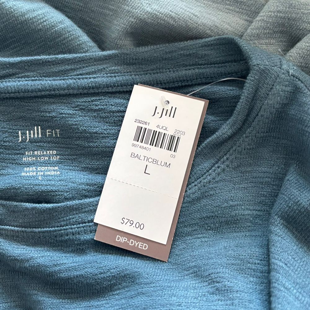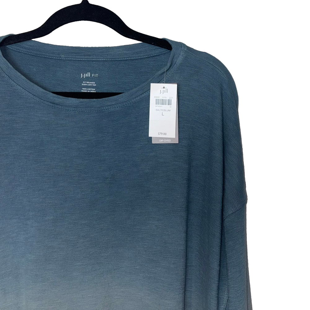 J. Jill Baltic Blue Dip-Dyed Relaxed Fit High Low Top - Size L - NWT Details: Pull over style. Size: L Measurements: 27" from shoulder to hem (front) 29" from shoulder to hem (back) 25" armpit to armpit Fabric: 100% cotton. Condition: New with tags. Reasonable offers welcome; please keep in mind that shipping (approx. $9 for Priority / $5 for Ground) is included in Buy It Now price. :)