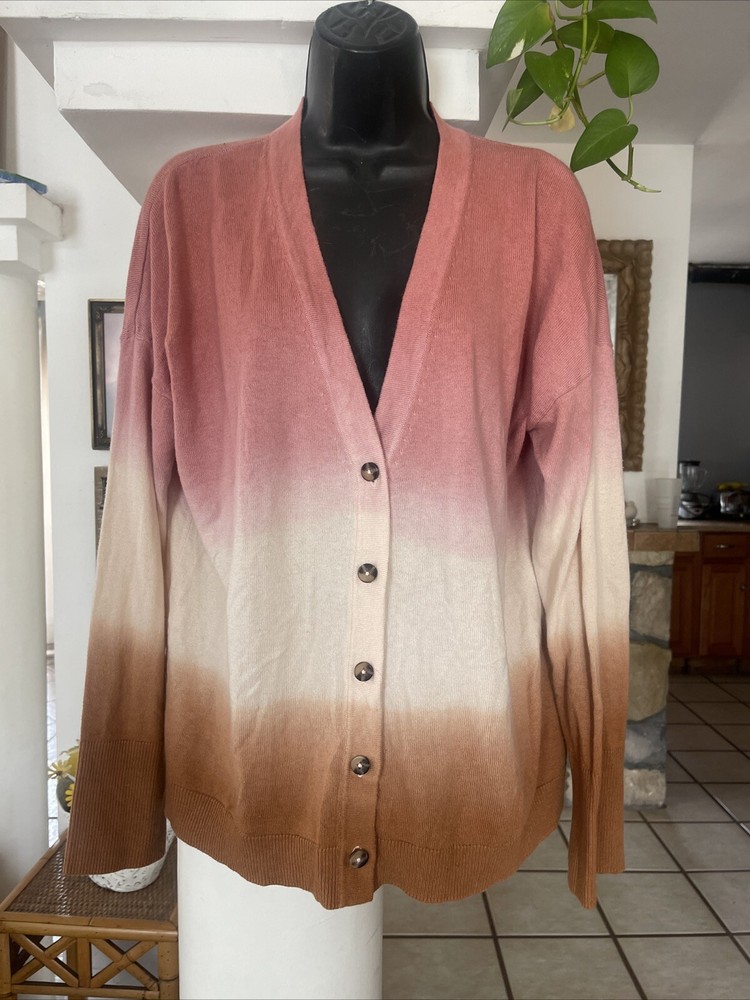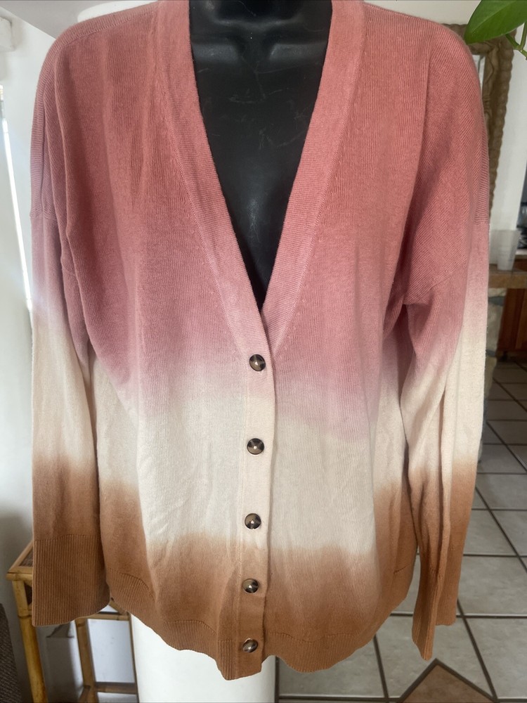 J Jill Dip Dyed Ombré Cardigan Sweater Womens Large Pink Brown White Button. Condition is Pre-owned. Shipped with USPS Ground Advantage....