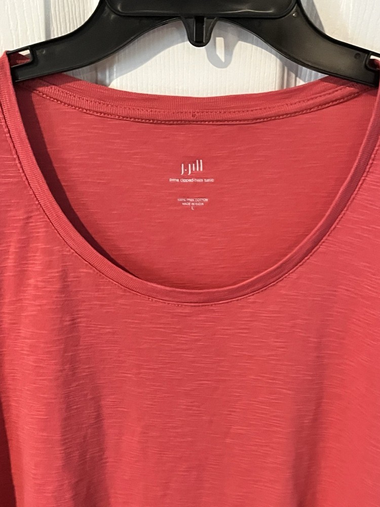 J Jill Pima Dipped Hem Cotton Tunic Top Slub Knit Russet Red Womens L 121771 excellent condition from a smoke free home