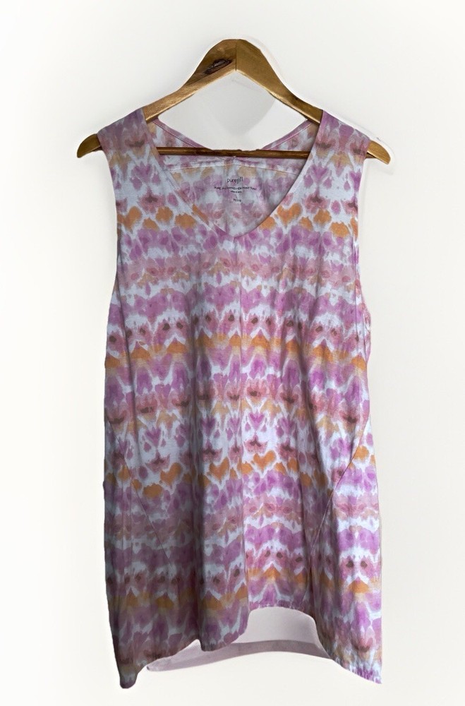 J Jill Pure Jill dipped hem print tunic top pinks blues oranges pastel print sleeveless size LARGE PETITE great used condition 100% pima cotton I am selling several J Jill tank tops/sleeveless tops in size Large and Large Petite I am selling this tank top also in a large we are a non smoking pet owning home
