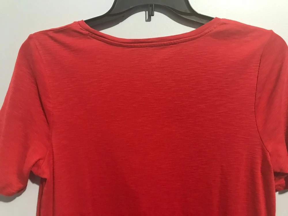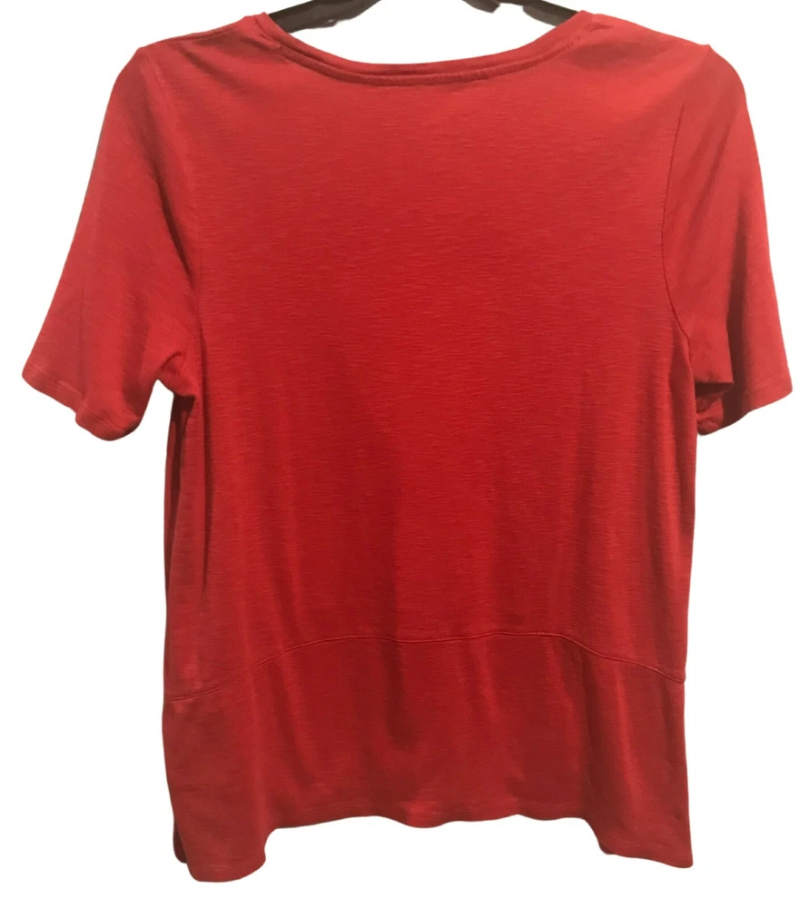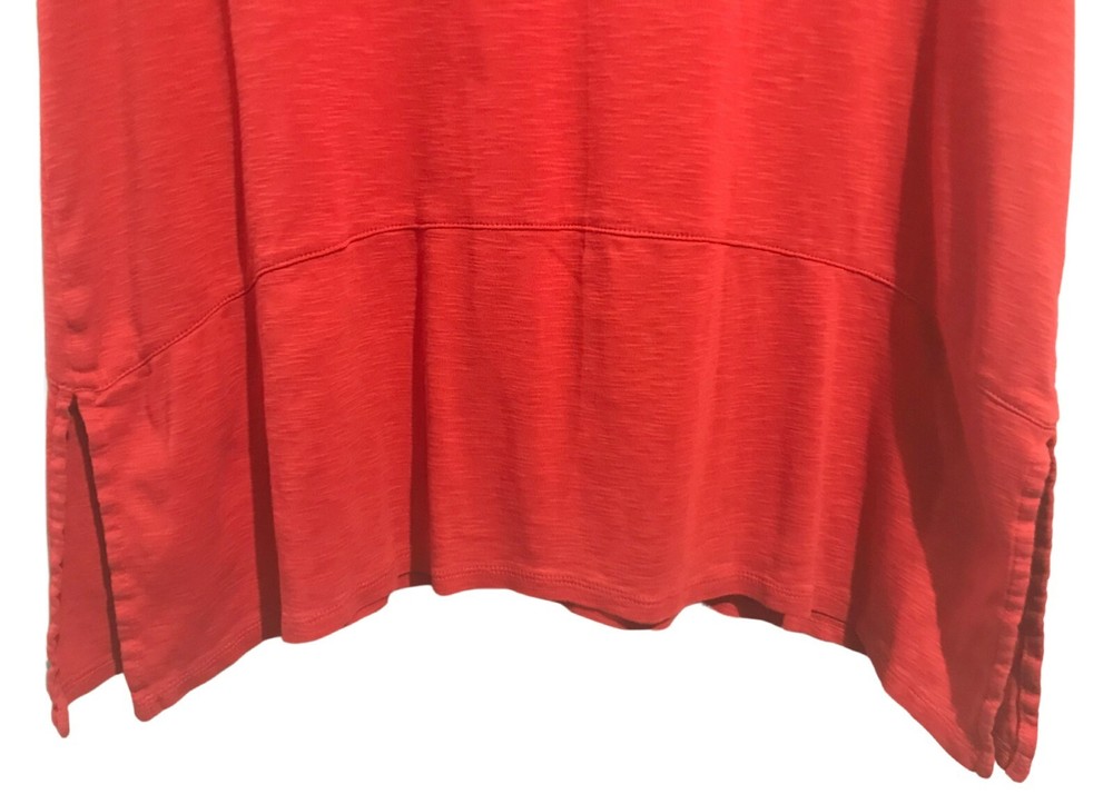 J Jill Pima Dipped Hem Tunic Knit Top Size Large Petite Red - More of a tomato red Side Slits Scoop Neck Shark Bite Hemline 100% Pima Cotton Approximate Measurements Taken Flat: Chest: 21" Length: 27-...