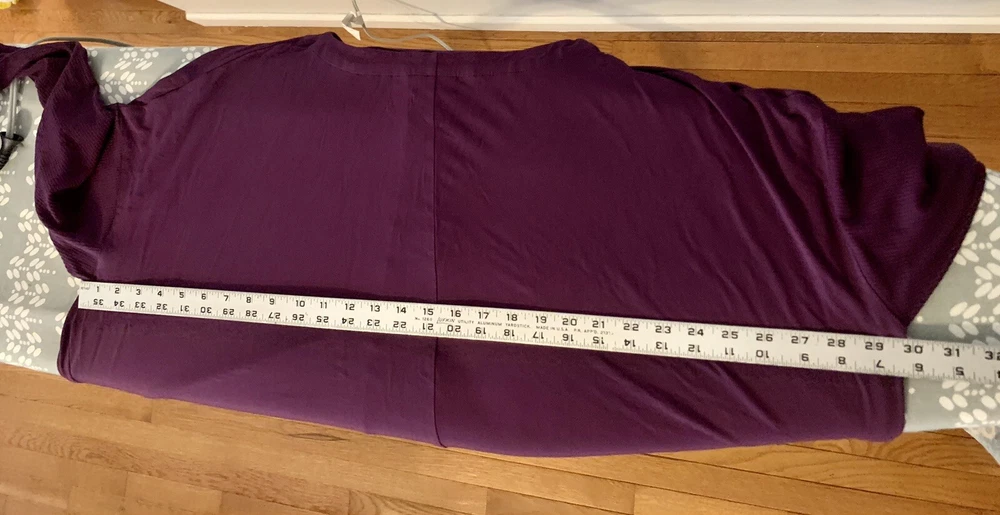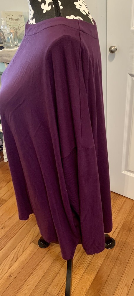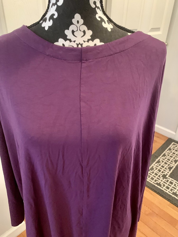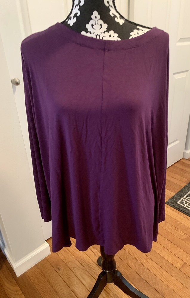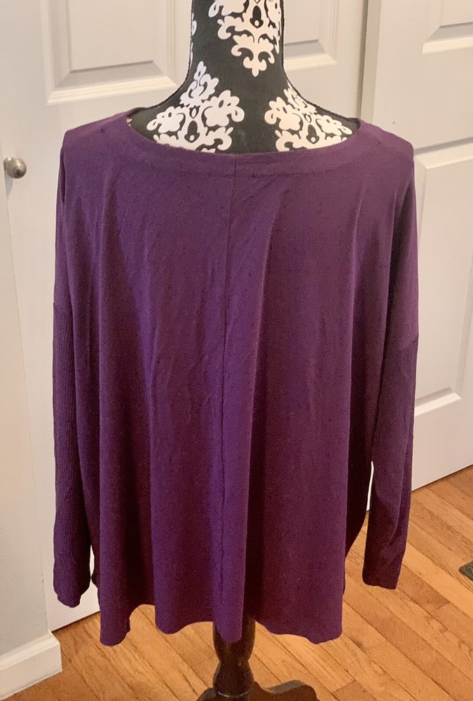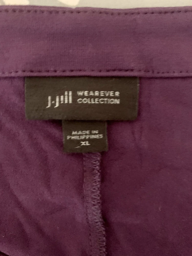 J. Jill Wearever Berry XL Long Sleeve Pullover Top Ribbed Sleeve Dipped Hemline. Soft knit boat-neck top has special touches that make it amazingly versatile. Designed it with an oversized fit, ribbed texture at the sleeves and a dipped asymmetrical hemline in the back for a style that's easily dressed up or down and looks great with pants, jeans or a skirt. Front and back center seam. Dropped shoulders. Side vents add even more ease. Virtually wrinkle-free. Made from soft European yarns. Please see pictures for measurements