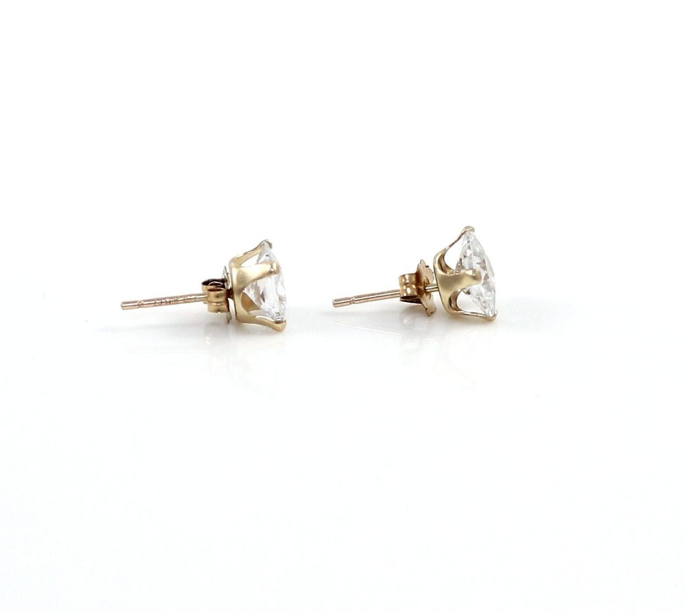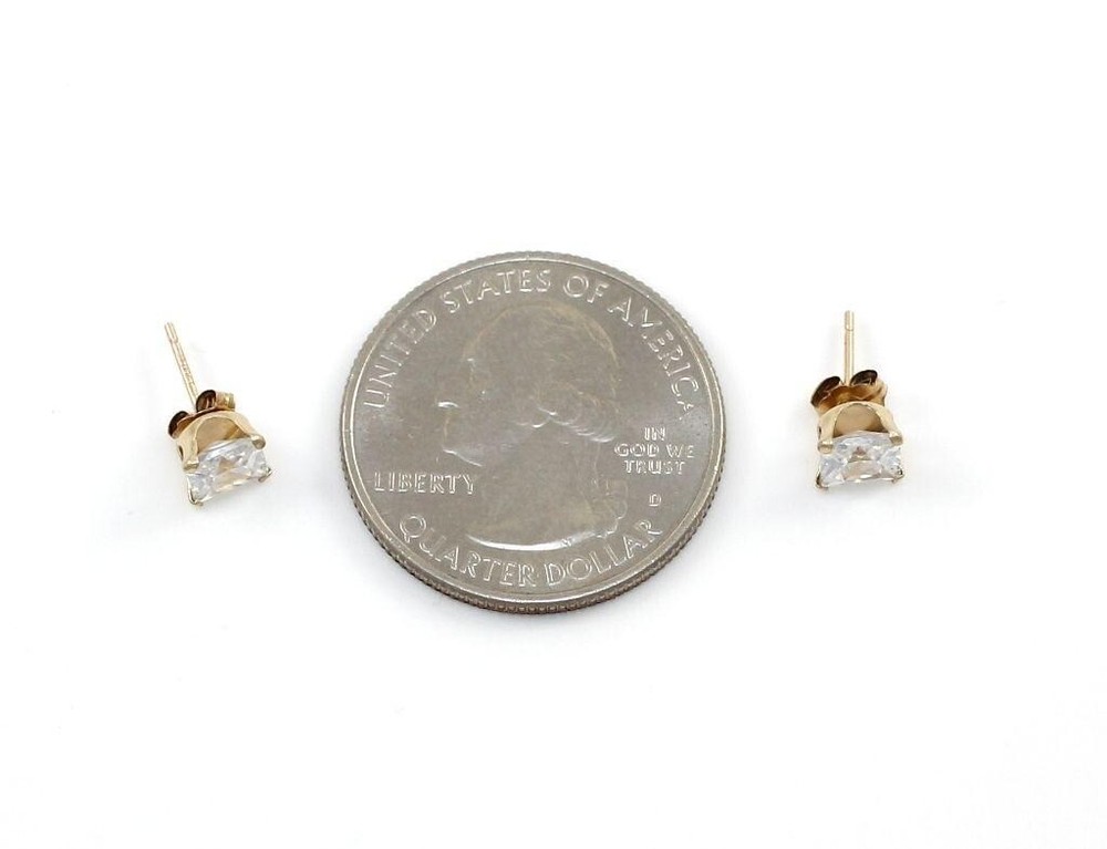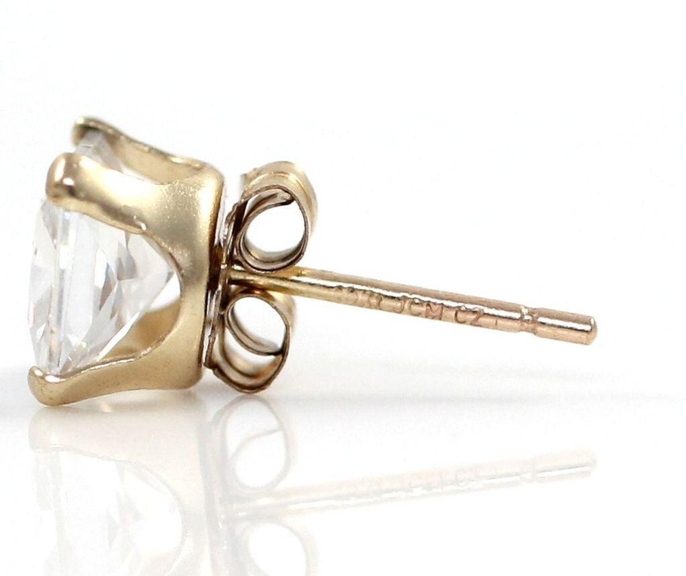 JACMEL Sold 10K Yellow Gold Princess Cut Clear CZ Stud Post Earrings Gram Weight ~ 0.7 Main Stone ~ Clear CZ Main Stone Length x Width ~ 5mm Total Carat Weight ~ 1.42 Hallmarked ~ Earrings- Yes, 10K; Backs- Yes, 14K Tested ~ Yes Additional Notes and Information ~Professionally cleaned and tested. 14K gold backs included. Inventory Code ~ GHI-20-CC442-MS190A17 Please contact us with any questions. We love to hear from shoppers. Thank you for your interest.