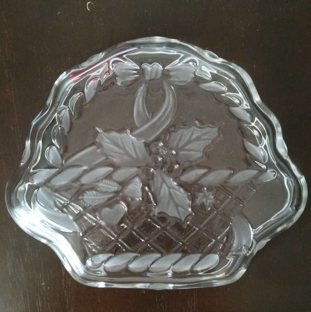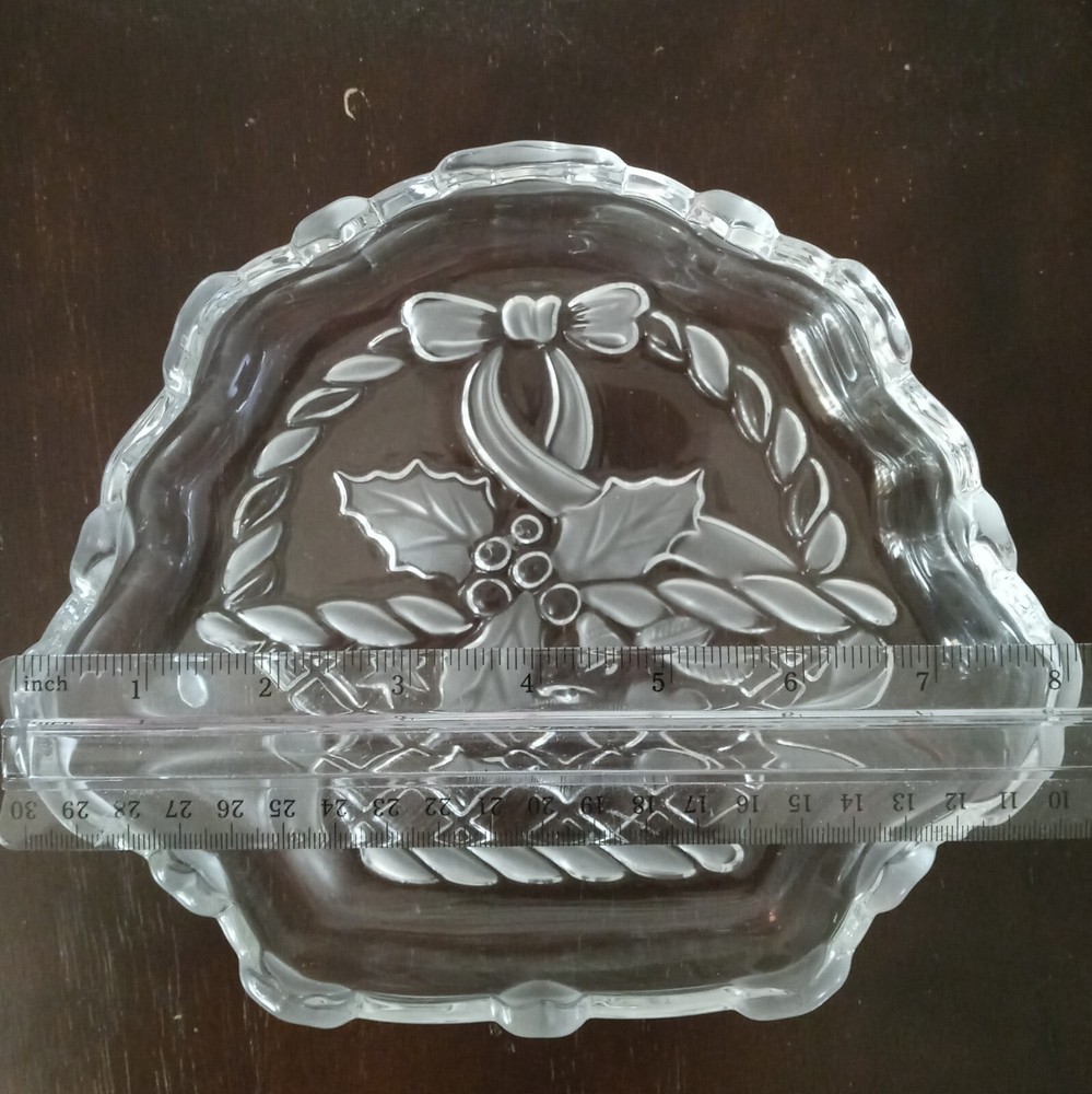 Vtg. STUDIO NOVA JAPAN CLEAR CRYSTAL BASKET-shaped CANDY DISH with FROSTED BASKET with POINSETTIA design. It is 8 inches in diameter and 1 inch in depth. It has good weight as it is expected of great quality crystal. It weights 1 pound and 7.4 ounces. It is in excellent vintage condition with no visible signs of wear. I hope you love it and thanks for watching!