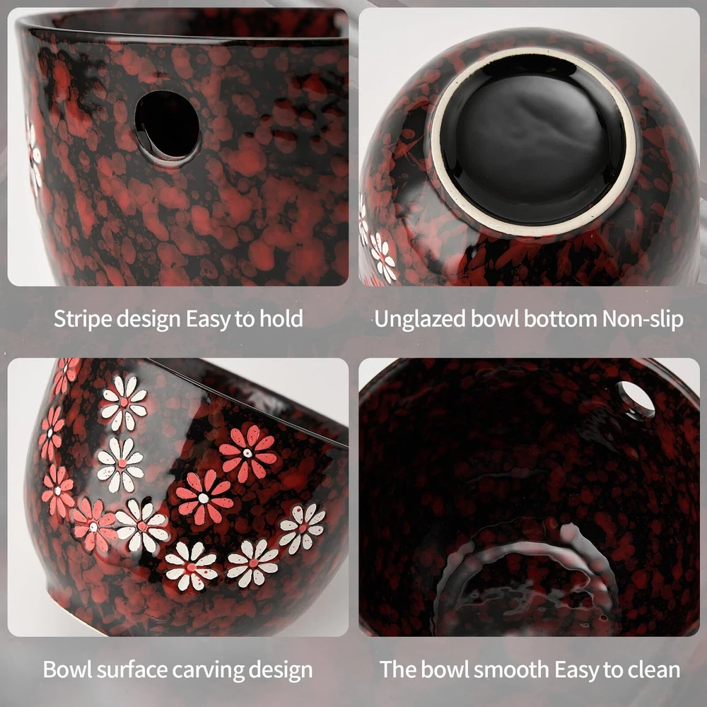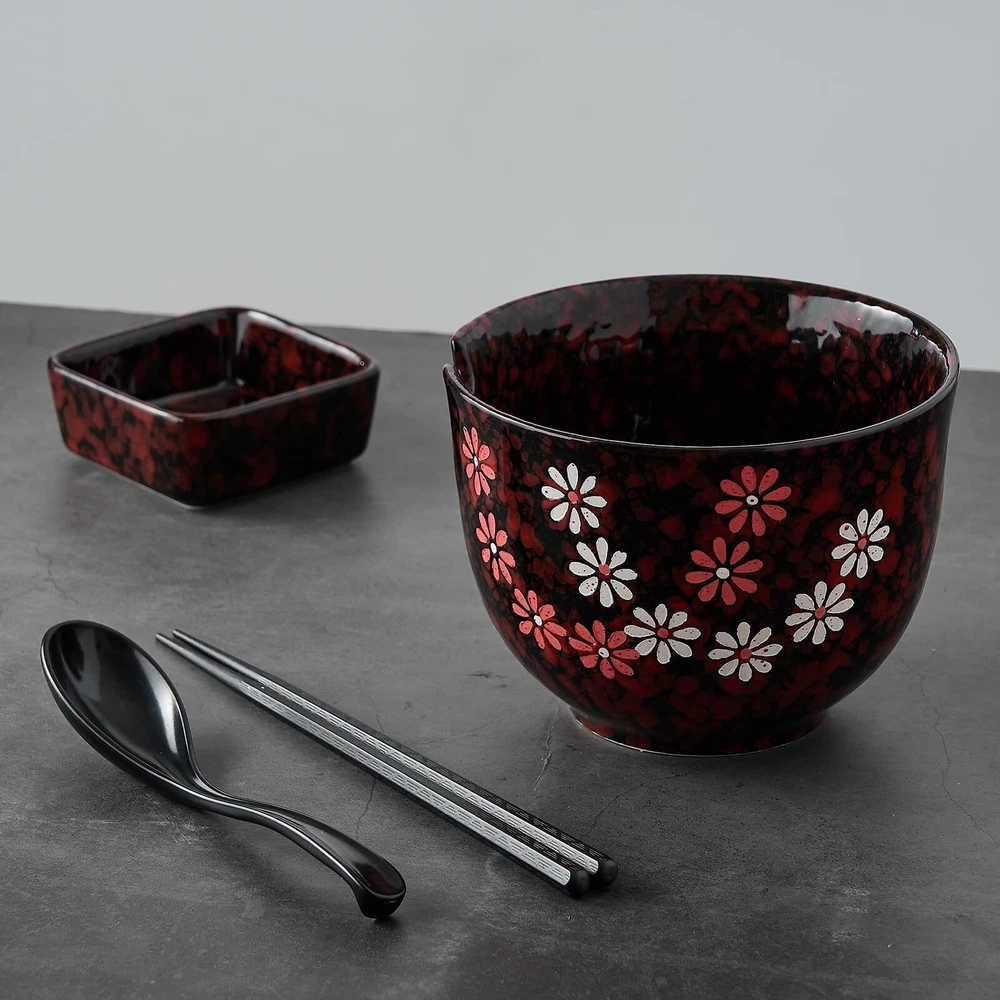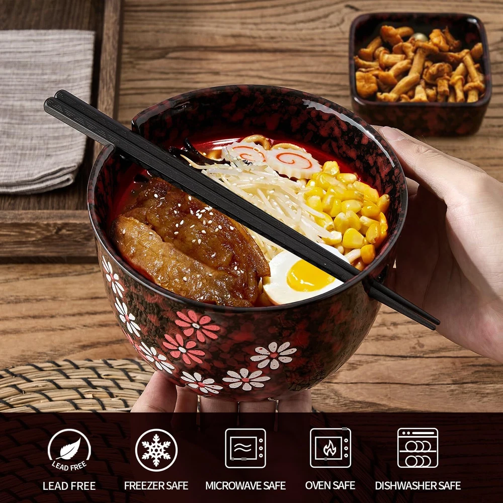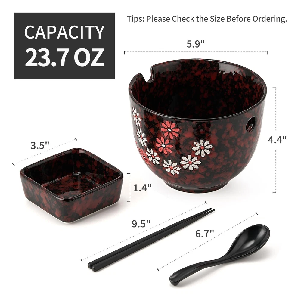 We offer Free Shipping on all order!! Wel come to my stores, The Smart of your choice and satisfaction guarantee. JIEMEI HOME Ceramic Ramen Bowl with Square Dipping Saucer, Chopsticks & Soup Spoon, 6 Inch Ceramic Noodle Bowl Set for Asian Food, Pho Udon Noodle, Special Reactive Glazed Crimson Gallery Product Description Features 🍜【High Quality】 Durable and Safe, Lead-free, cadmium-free.Our noodle bowl and dipping dish are made of high quality,non-absorbent, insulated ceramic. It's durable others.So your ramen tastes fantastic and stays warm. Treated to resist chipping, staining, fading and will look new even after many years of use. 🍜【Unique Ramen Bowl set】Made of high quality porcelain, with special reactive glazed color, the process of refining by no artificial intervention, the glaze itself forms the most pure natural beautiful color and patterns, making each bowl/dish is special one and unique.An artwork in your dining table and kitchen. 🍜【VERSATILE BOWL】:The classic flower pattern ramen bowl with 24 oz in volume, each set includes a beautiful Japanese ramen bowl, chopsticks, saucer and a spoon. it's just the perfect size for serving your favorite Asian specialties soups, noodle dishes or fried rice. You'll be able to serve your favorite dishes Ramen, Vietnamese Pho, Udon, Korean Soba and Chinese Noodles many more. 🍜【Easy Clean up 】 The noodle ramen bowls and saucer can withstand -4℉ to 400℉, you can put it into DISHWASHER, MICROWAVE, or you can wash it with hot water to clean up easily without worring about grease stains. 🍜【Guarantee 】 24hours customer service and 30days return and full refund. Not worry about your purchase! Search the for more kitchenware. Thank you for your business, your trust and your confidence. It is our pleasure to work with our customers. Delivery ☎ If you have any question. Please do not hesitate to contact us. Please send us message via eBay system. We reply every message within 24 hours. If you did not receive our reply. We think maybe we did not receive your message. Please send us message again. Payment Policy ❤ Payment managed by eBay. Shipping Policy We only send the item according to the address on Ebay, the address can't be changed once we pack the item. Please double check your shipping address it before your send the payment. It should take 3-5 business days for the product to reach your destination. If the product doesn't reach your destination within the time limit, please give it an additional 1-2 business days in case of postal delays and/or possible technical issues. We use a selection of shipping services such as UPS, FedEx, USPS etc. We ship only to the 48 contiguous states of America. We do not ship to Hawaii, Alaska, US Protectorates, APO/FPO addresses and PO Boxes. Local pickups are not offered. If it takes any longer than that, please do not hesitate to contact us to resolve the issues. Feedback ❤ We take our reputation seriously, we buy and sell online, so we understand the value of trust. If you are unsatisfied with your order, please contact us and we will work with you to resolve it to your satisfaction. Return Policy - This product comes with 30-Days Money Back Guarantee. - If you receive an item and it doesn't work properly or you don't like it because of any reason at all. - We have a 100% refund/return policy. We will ship you a new item or refund your money for the full sale amount. - For all returned products, buyers MUST contact us for the returning address.