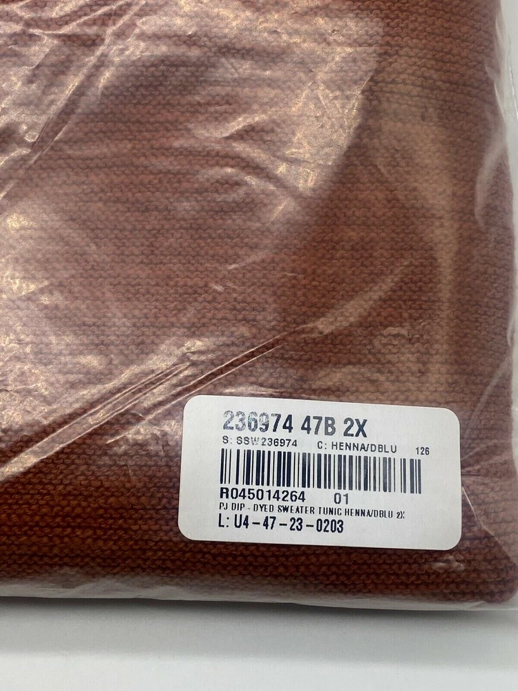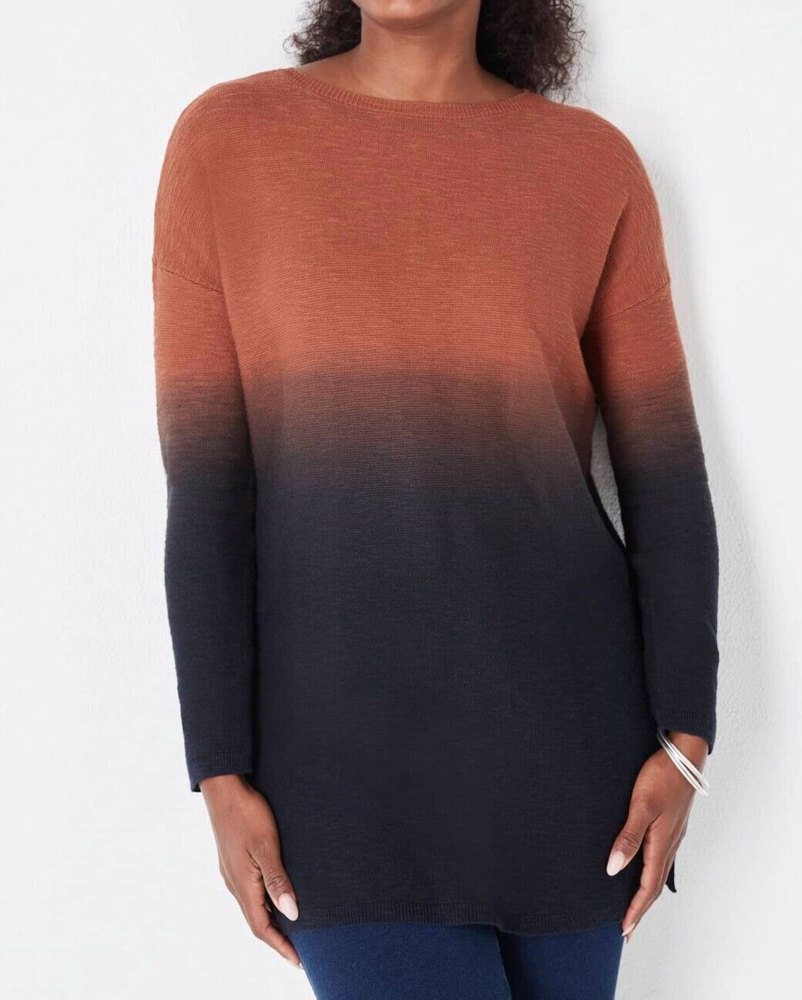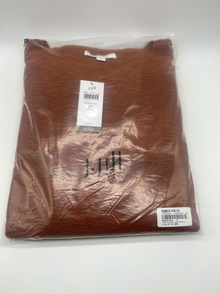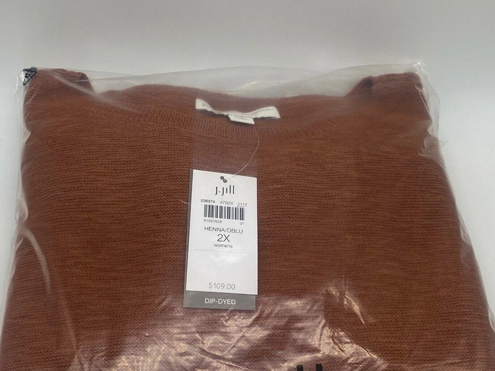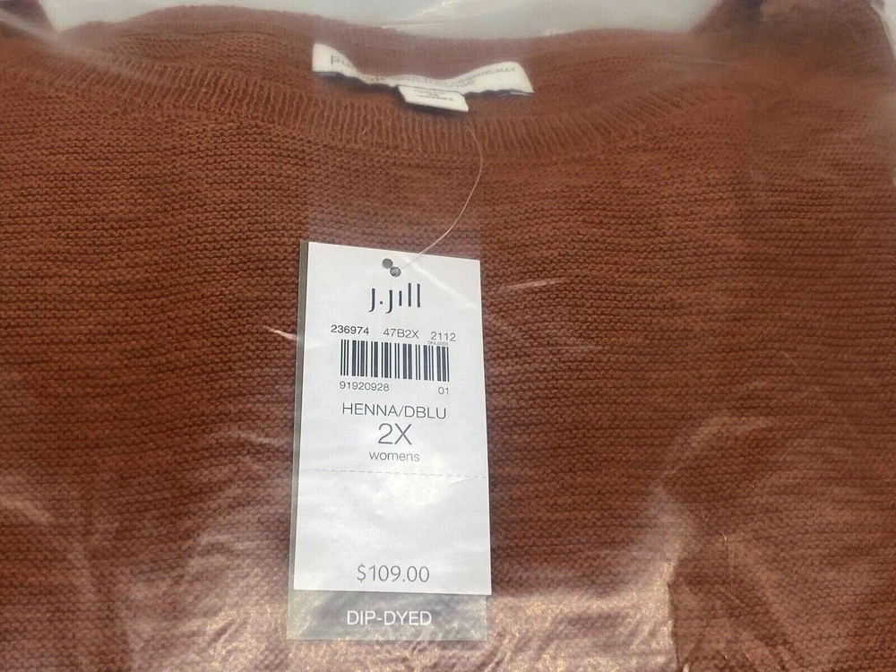 Our relaxed boat-neck tunic is made from ultrasoft organically grown cotton, so you'll feel as good about it as you do in it. Designed with subtle texture and a rich dip-dyed effect, it's a unique everyday style that reflects the beauty of a peaceful sunset. Plus, the longer length pairs effortlessly with leggings for absolute comfort. Dropped shoulders. Side vents. 100% organically grown cotton yarn Hand wash cold separately, only nonchlorine bleach if needed, reshape and dry flat, do not twist or wring, cool iron if needed; or dry clean Thigh length: 32" center back Long sleeves Imported COLOR: Henna/Deep Blue STYLE NO: 236974 SIZE: 2X Bust: 54" (dropped shoulders) Hemline: 57" MSRP: $109 NEW with TAG in J.Jill packaging! Perfect NEW condition, first quality, NEVER worn! Directly from J.Jill! Comes from a clean, smoke free home! ~ 1L4 ~