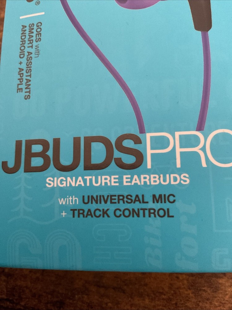 The JLab JBuds Pro Signature Wired Earbud Headphones are double earpieces in black color, designed for studio and live monitoring. They have a Bluetooth wireless technology, built-in microphone, and come with replaceable foam ear tips. The headphones feature adjustable headband, volume control, L-shape plug, and in-line control for convenience. The model is JBuds Pro Signature.