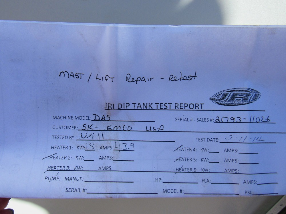 JRI LG CAPACITY HEATED DEEP DIP AGITATION TANK (STEEL CONSTRUCTION) DAS 1000LB LIFT CAPACITY 75"OAW 60"OAD 10'OAH 62"INTERNAL TANK WIDTH 50"HEIGHT FROM LIFT TRAY TO TOP OF TANK WORK AREA FROM FRONT OF TANK TO REAR OF TANK 34-1/2" 58"X32" LIFT TRAY INTERIOR WORK AREA 34 1/2 x 60" DUE TO HEIGHT NOTICE THIS ITEM MUST BE SHIPPED ON STEP DECK TRUCK OR UNIT COULD BE LAID ON ITS SIDE ON PALLET ALTHOUGH ITEM IS PICTURED OUTSIDE ITEM WILL BE STORED IN OUR WAREHOUSE SELLING ITEM THAT IS PICTURED ONLY. PLEASE CALL LEANN IN OUR OFFICE AND SHE WILL GLADLY ASSIST YOU WITH FREIGHT COST AND SETUP : 803-810-0017 OR 803-222-0460! Condition: NEW, in box NEW, no box NEW, old inventory X USED, but in good working condition. USED, SOLD AS IS REMANUFACTURED, rebuilt DETAILS: PLEASE NOTICE WE ARE SELLING ONLY WHAT IS PICTURED. Important SHIPPING Note PLEASE READ! PLEASE CONTACT US BEFORE PAYING • If you feel like the combined shipping price is not accurate • Need to combine orders from different listings • Want to use your own shipping account number • Local pick up • Freight, etc... You may purchase by clicking the "Buy it now" but DO NOT PAY for your order. Instead, please request an invoice and we will correct the shipping amount. We are happy to accommodate, but this must be taken care of before payment is made. We will not be able to refund you after payment has been made. If you have any issues with your purchase, please contact us at 803.222.0460. Business hours: Monday-Friday | 7am-4pm EST. Shipping times: We generally ship via a ground service the next business day after your item is purchased. Contact us for expedited shipping options. Freight Items: Large items that require an LTL shipment generally go out the next business day after payment is received. Some exceptions may apply. Larger items that must be shipped via flat bed truck will ship as soon as the truck can be secured, usually no more than 3-5 business days. It is very important that the seller provide us with accurate shipping info on freight shipments, we must know if we will be shipping to a business, the business name, address, contact info, and if receiver has a way to unload the pallet/item or if we need to arrange for a lift gate. Returns: Unless Sold “As-Is,” all of our products come with a 30 Business Day Warranty. If your item is received in a different condition than stated (DOA, not working properly etc...). We are more than happy to rectify any problems by replacing the item or issuing a refund. Please open a return via ebay. Feedback: We want our customers to be completely satisfied with their purchase. If anything about your transaction is not to your satisfaction, please contact us BEFORE leaving feedback, inform us of the issue, and we will do our best to resolve the problem to your satisfaction. We think good communication ensures a successful transaction and efficient problem resolution in advance of posting permanent feedback and gives both parties the best chance for a positive trading experience on eBay. SEE GARY FOR WEIGHT AN 1 QTY 2/17/25