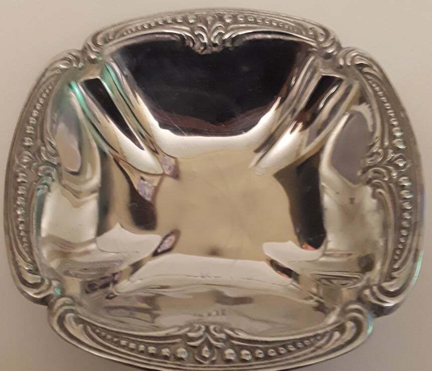 JUAN VELA STUDIO PEWTER - 9" SQUARE CANDY DISH - POTPOURI BOWL DECORATIVE - PREOWNED - PEWTER BASE WITH A CHROME FINISH BEAUTIFUL ADDITION TO ANY COLLECTION - 9" WIDE x 2.5" DEEP CAREFULLY PACKAGED FOR FAST SHIPPING