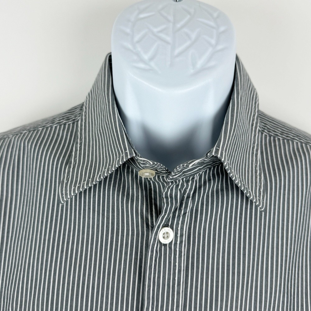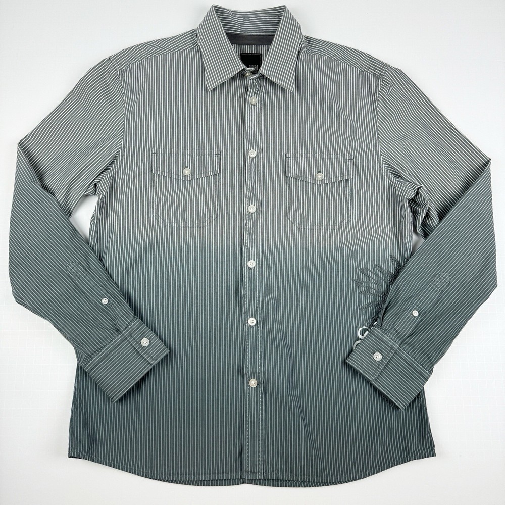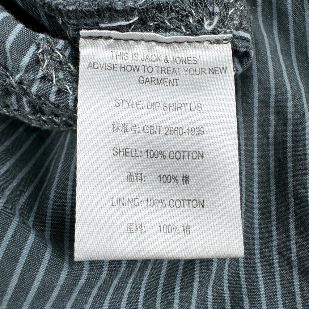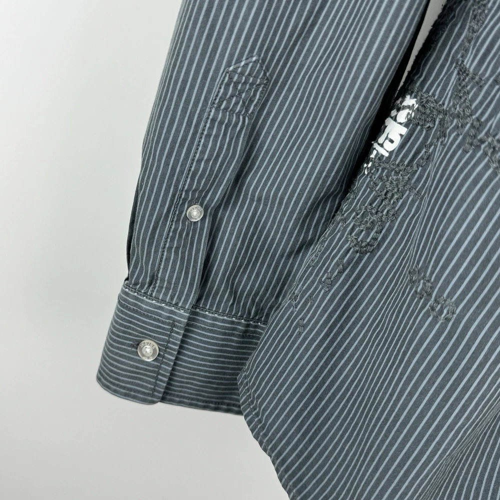 Jack Jones Men's Gray Striped Dip Embroidered Long Sleeve Shirt Size 180/100A 100% Cotton Pre-owned in good condition Underarm to Underarm: 20.5" Length: 28" Questions? Please ask! 0403