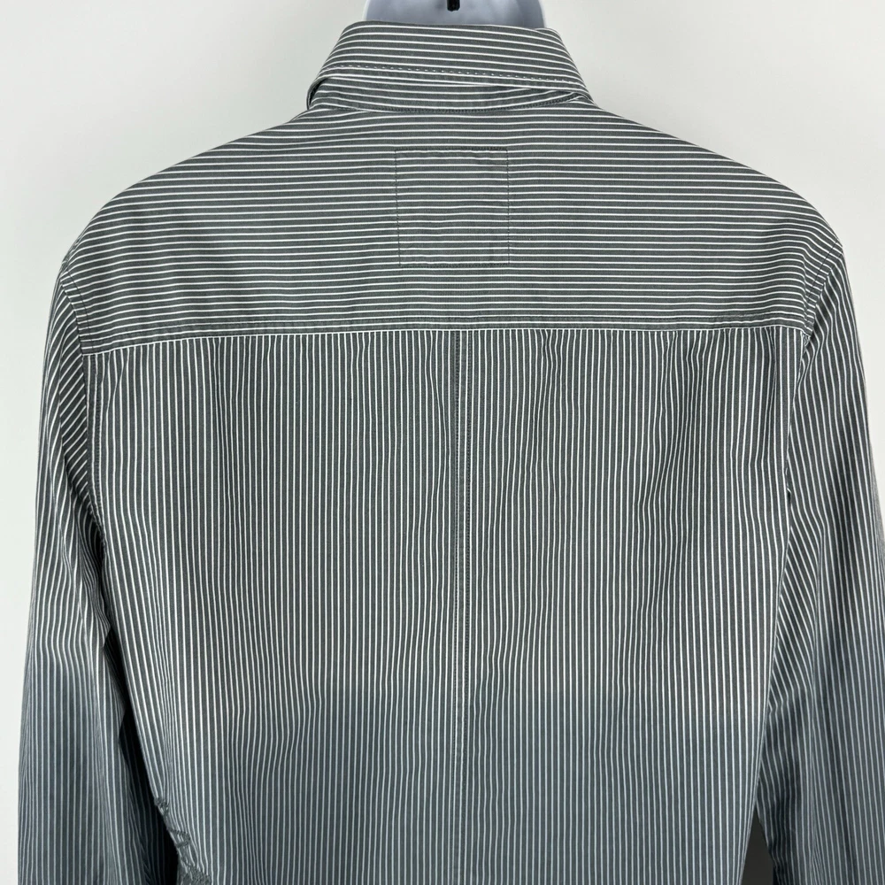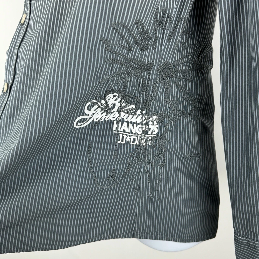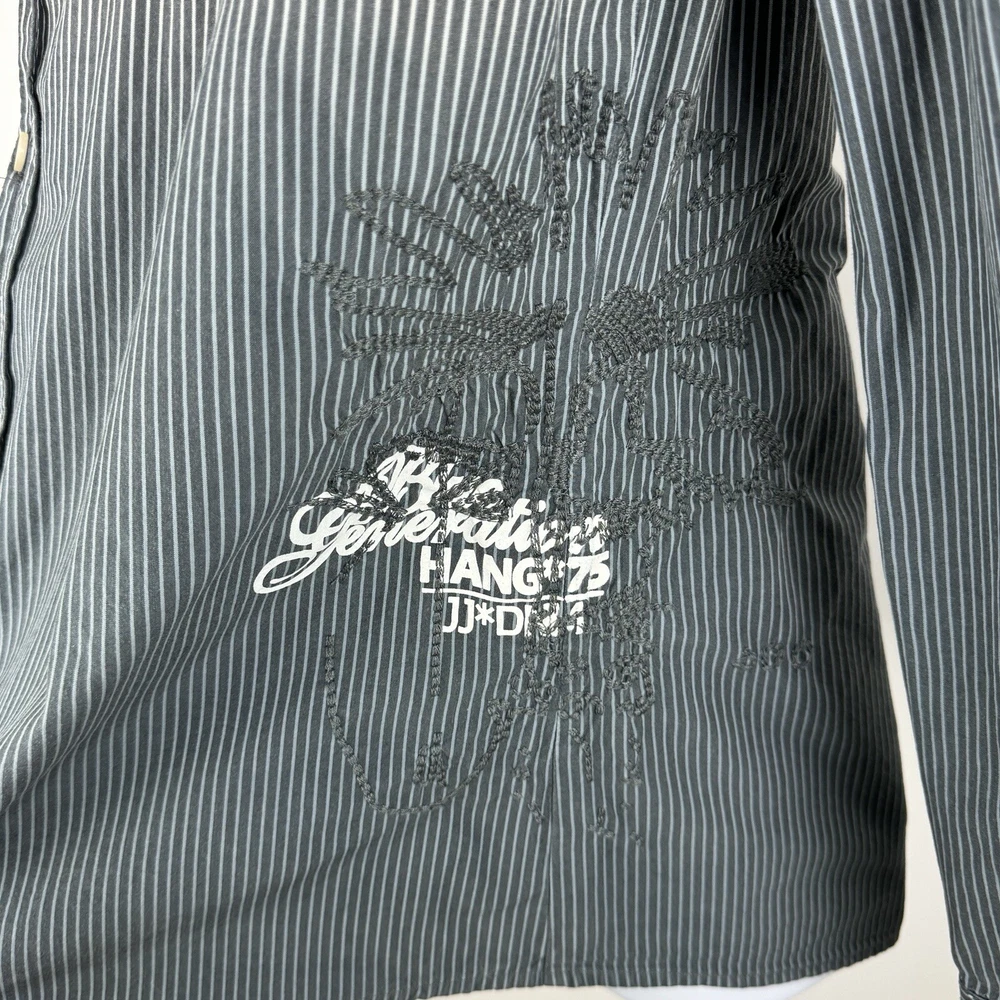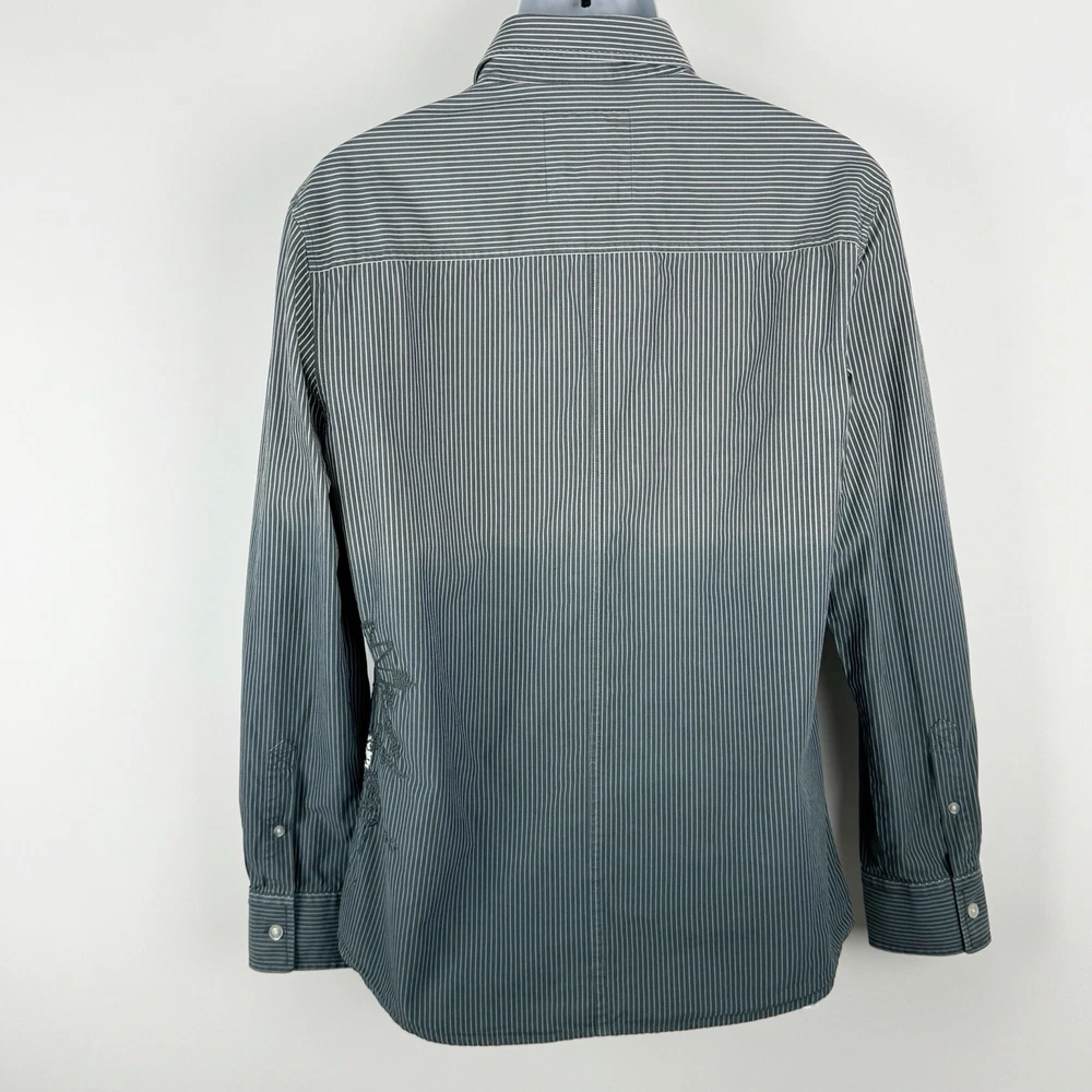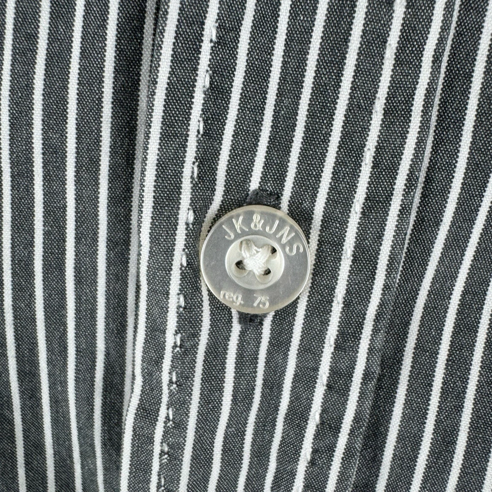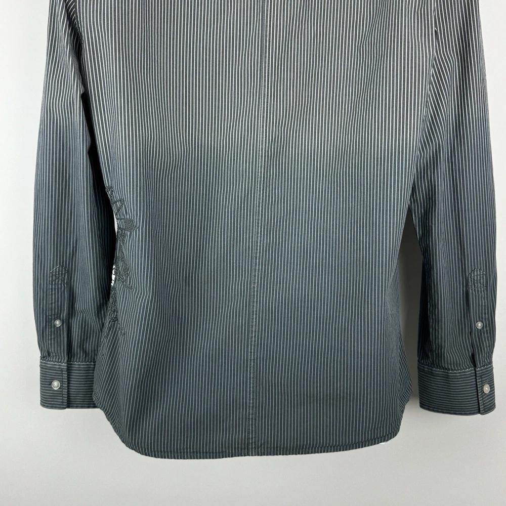 Jack Jones Men's Gray Striped Dip Embroidered Long Sleeve Shirt Size 180/100A 100% Cotton Pre-owned in good condition Underarm to Underarm: 20.5" Length: 28" Questions? Please ask! 0403...
