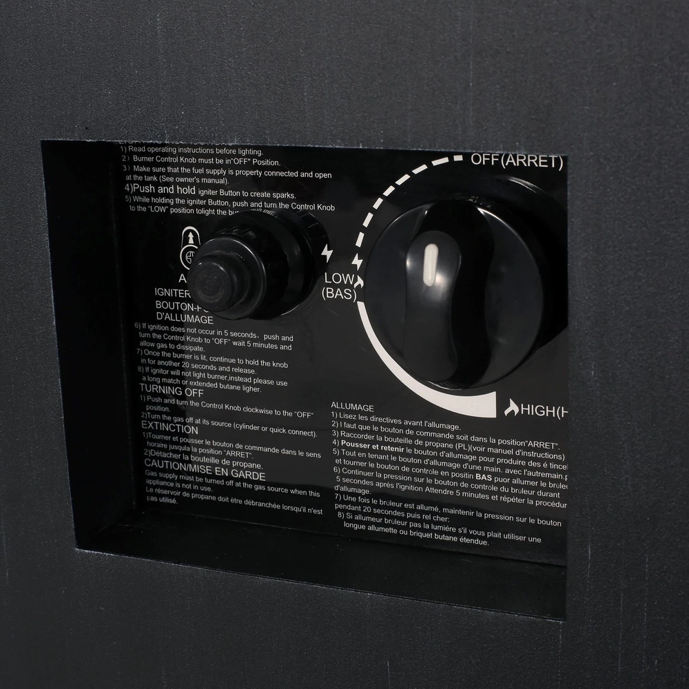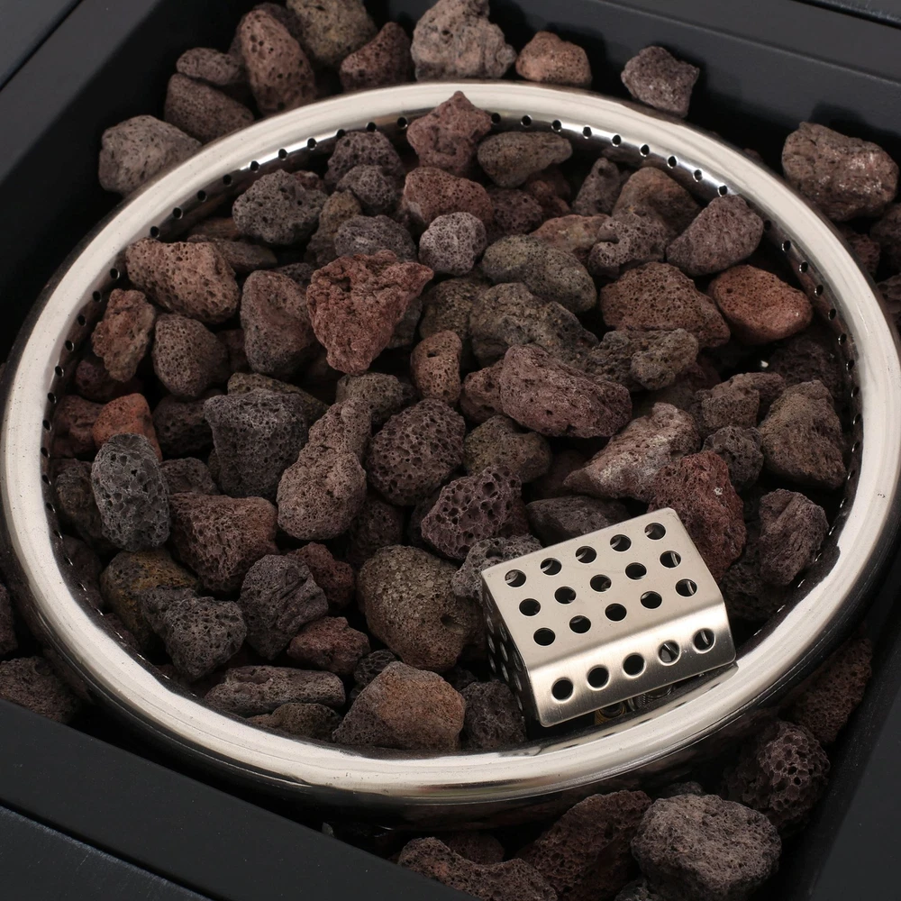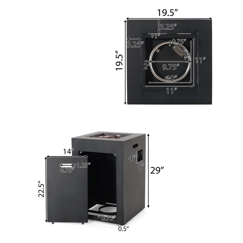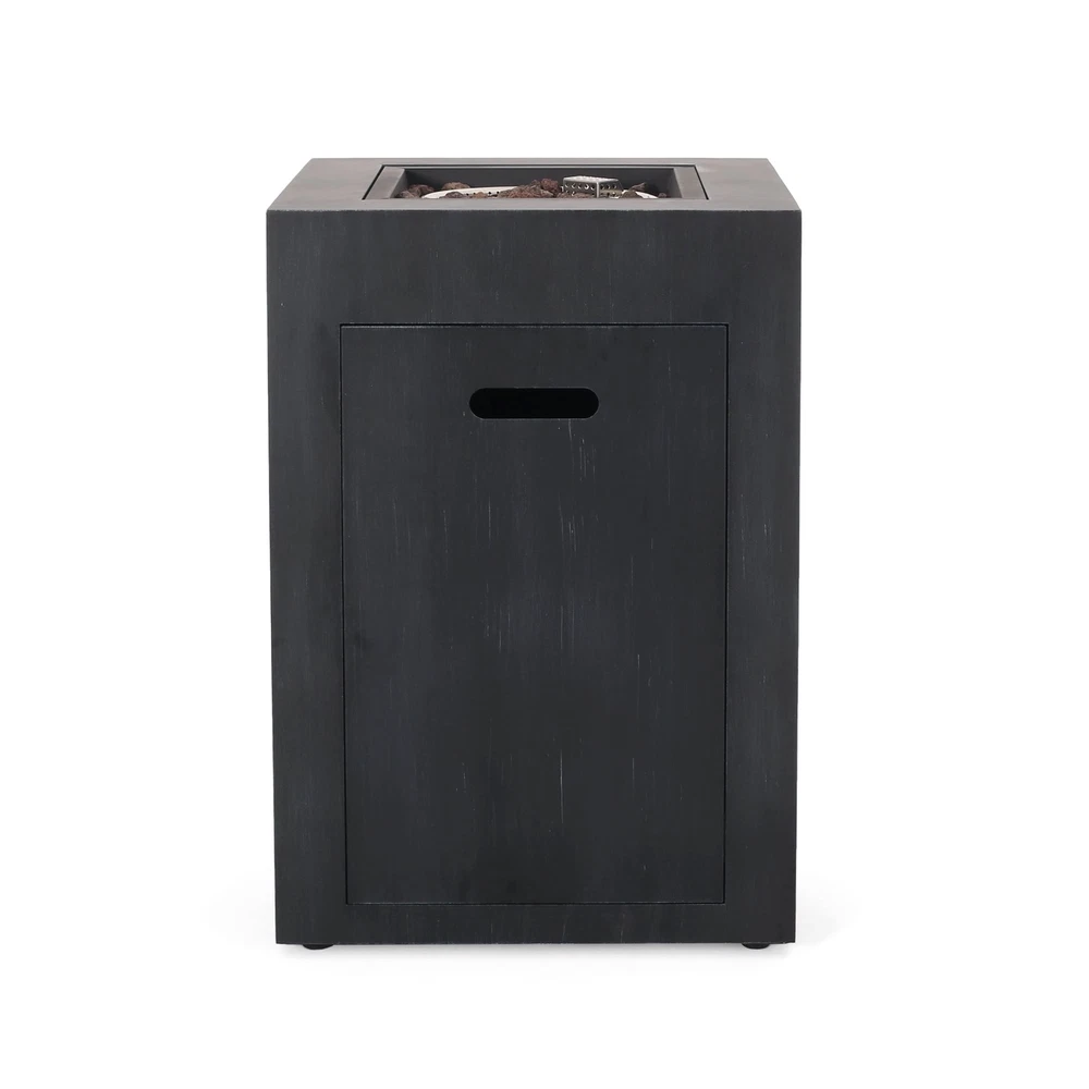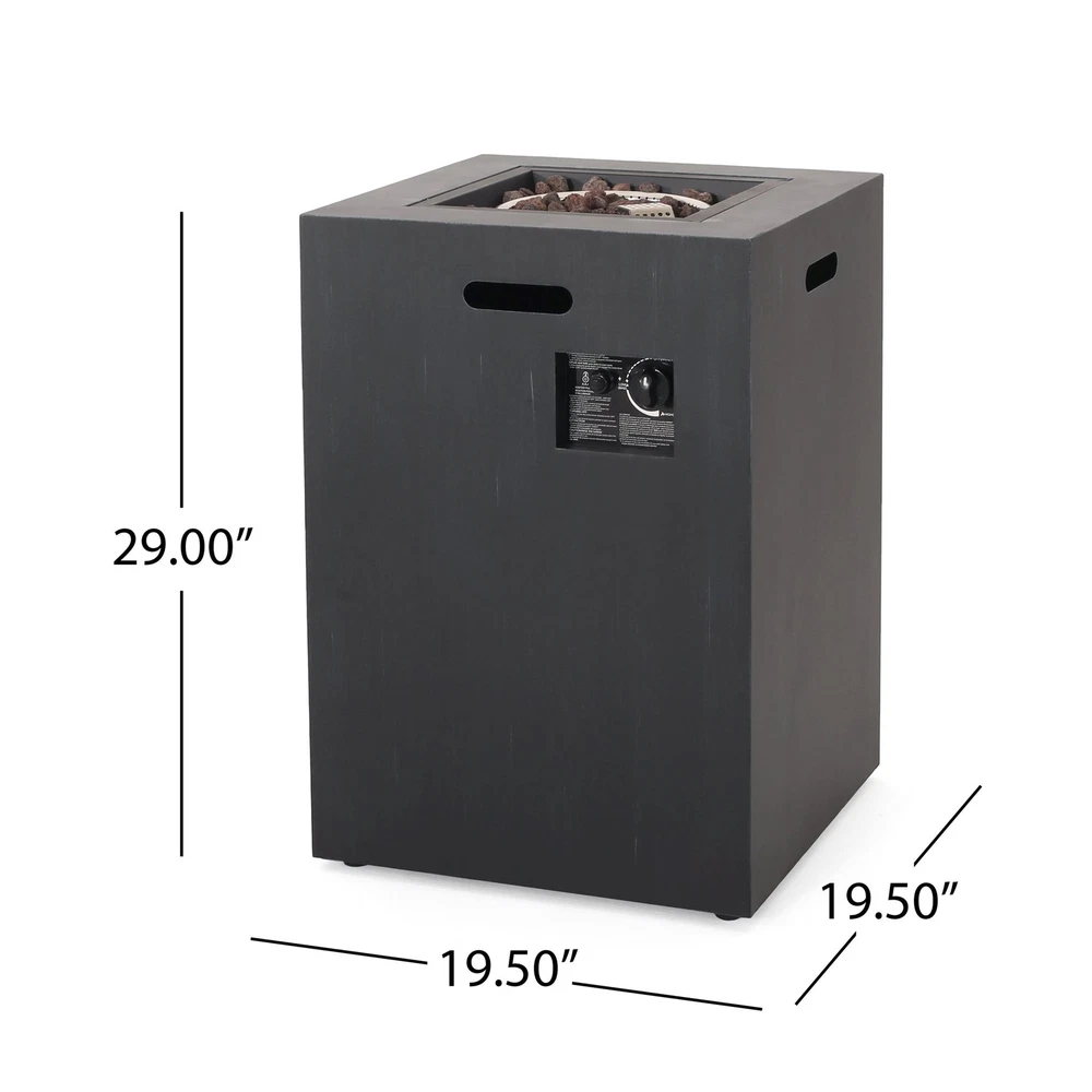 Create a focal point in your backyard and enjoy a bit of warmth. Made with powder-coated iron, our 30,000 BTU fire column offers an upgrade in style that offers a bit of heat and excellent aesthetic for all to enjoy. This square piece brings a sophisticated atmosphere to any outdoor space, accentuating your decor in all the best ways. Whether you need some lighting or just a stylish addition to your patio, our fire column will help make every evening a memorable one. IRON FRAME: Constructed of powder-coated iron, the frame of this fire column is made to be incredibly durable, ensuring that this piece will hold up under use. The frame is finished with a brushed black color, making this an understated yet chic addition to your home. 30,000 BTU: Featuring a square shape and a BTU of 30,000, our fire column makes it easy for you and your guests to stand or sit around its warm glow, providing light during those chilly evenings. TANK SPACE INCLUDED: This fire column comes with a built-in space for your propane gas tank. You can enjoy your fire column without having to worry about running a hose to the tank or tripping over the exposed tank. DIMENSIONS: Choose an accessory that is the perfect size for you and your furniture. This fire column is 19.50” W x 19.50” D x 29.00” H. You will love how much your space can transform with the simple addition of this charming fire column. NO ASSEMBLY REQUIRED: No assembly is required for this fire column. Simply place the lava rocks in the pit without covering the burner, and then plug in your standard size propane tank and enjoy your fire column. Includes: One (1) Fire Pit Material: Iron Finish: Brushed Black 30,000 BTU Dimensions: 19.50 inches deep x 19.50 inches wide x 29.00 inches high PROP 65 WARNING